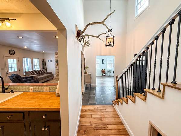 Welcome to your dream retreat where modern luxury meets rural charm! Just +/- 1.6 miles from Interstate 52, this completely remodeled estate sits on +/- 34 pristine acres in Lawrence County, Ohio, offering privacy, elegance, and convenience all in one. The home itself is nothing short of stunning! Featuring soaring ceilings reaching 10 to 15 feet in some rooms, the open spaces flow with natural light and highlight the craftsmanship throughout. Gleaming hardwood floors lead you into a grand living space accented by custom poplar steps that add both warmth and character. At the heart of the home, the gourmet kitchen is designed for both beauty and functionality. Outfitted with rich butcher block countertops, smudge-proof appliances, and modern finishes, it blends rustic touches with refined style. The dining and living areas carry this same sense of sophistication, making entertaining effortless. The primary suite is a true gem, boasting a spacious layout, spa-like en suite bathroom, and thoughtful details that elevate everyday living into an experience. The attic offers an additional +/- 600 square foot of living space that could be converted into a bedroom or a bonus room. Every corner of this home reflects the careful attention given to its complete remodel, ensuring both comfort and longevity. Practical luxury continues with a high-efficiency geothermal HVAC system, delivering year-round comfort with energy-saving performance. On the exterior, striking vertical board and batten siding pairs timeless farmhouse design with modern elegance, creating curb appeal that is both fresh and classic. Whether you're seeking a private residence, a country retreat, or simply a place to spread out and breathe, this +/- 34 acre property is the perfect blend of high-end finishes and wide-open possibilities. Also on the property are two barns that would be great for someone to have a mini farm and have a few horses, goats, or cattle. This property has a small pond off to the side of the house with the option to make it a lot bigger with it being spring fed. There are ATV trails that go up onto this property that would allow someone to have a great place to hunt. There are several oaks and persimmon trees on this property offering a great food source for wildlife. This property is just +/- 2 miles from Chesapeake, OH, +/- 3 miles from Huntington, WV, and +/- 10 miles from Ashland, KY, offering you plenty of places for any amenities you may need. Sellers mineral rights convey. Sellers will allow $10,000 for any renovations that the buyer wants to add or change. All showings are by appointment only. If you would like more information or would like to schedule a private viewing, please contact Brian Whitt at (937) 545-7764 or Brian Salmons at (740) 646-9378 .