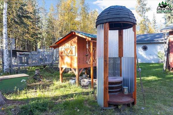 Full of character and designed with versatility in mind, this Craftsman-style 2-bedroom, 2-bathroom home sits on 2.5 acres off Chena Hot Springs Road. Blending comfort, function, and the quiet beauty of its natural surroundings, it's a property that stands out. For those with dogs, the property is especially well-equipped. A professional-grade heated kennel with 17 individual runs provides a safe, clean, and organized environment that's ideal for boarding, grooming operations, or mushing teams. The kennel's thoughtful layout makes daily care efficient while keeping animals comfortable year-round. The large, fully fenced yard also offers excellent training and play space right on site. Beyond the kennel, the property features a wood shop with its own wood stove, perfect for carpentry, hobbies, or additional workspace. Outbuildings include a copper and green pole barn (approx. 1,008 sq ft), a greenhouse for extending the growing season, a relaxing sauna, and a chicken coop, all supporting a self-sufficient lifestyle. Combined with the surrounding trails and open land, this setting offers both recreation and practicality just steps from the front door. Inside the home, thoughtful details shine from the Swedish maple flooring in the main living area to the soft-close kitchen cabinets with pull-out drawers, ample dry storage, and a mudroom with a sink. There's even a dedicated space designed for an indoor pool or hot tub, complete with a floor drain. Step outside to the large wrapping porch, where you can take in the peace and privacy of the grounds. The property is fully fenced and features gardens, fruiting trees, and perennials, including high bush cranberries, crab apples, lilacs, rhubarb, and raspberries. Thoughtfully laid out with wildfire-conscious spacing and easy access to nearby trails, the location offers the best of both convenience and rural charm. With its kennel facilities, versatile outbuildings, and comfortable home, this property is a rare find for dog groomers, boarding businesses, mushers, or anyone seeking a balance of work, play, and Alaskan lifestyle. Schedule your tour today.