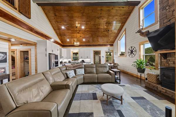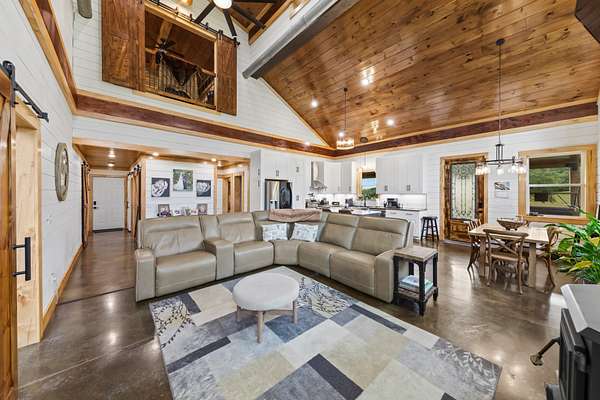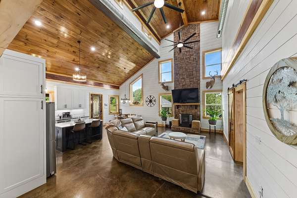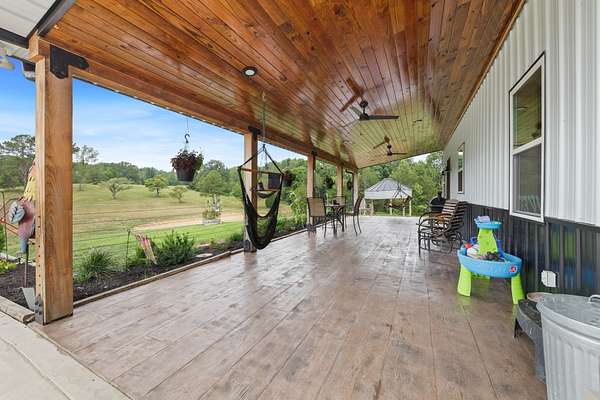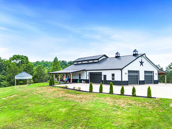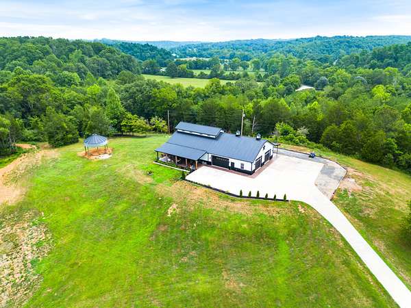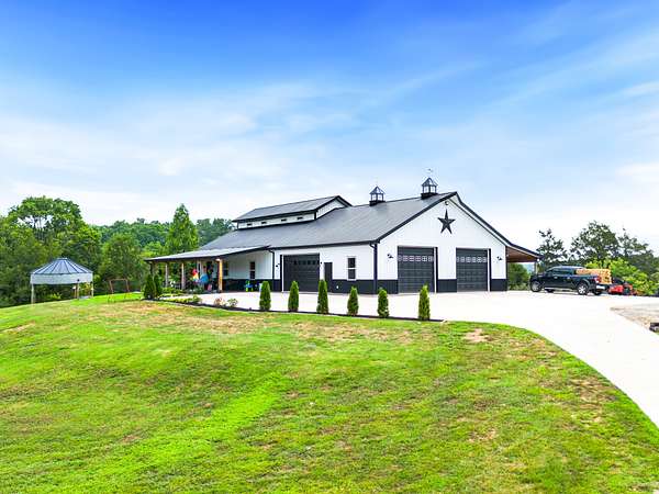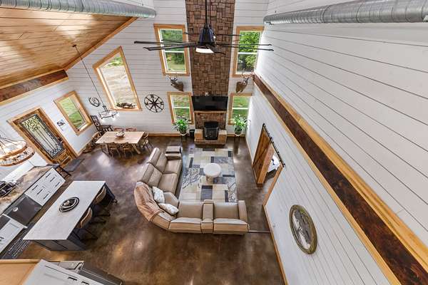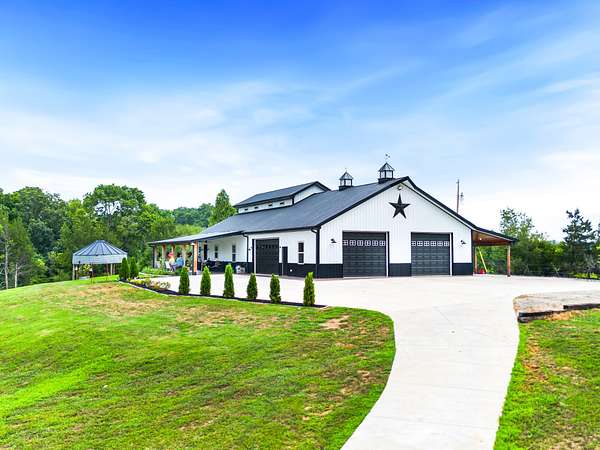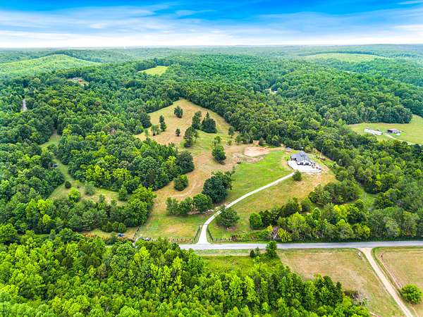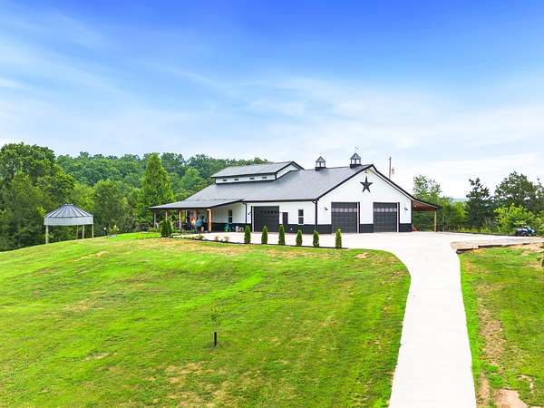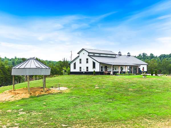 FANTASTIC FARMHOUSE RETREAT! Impressive 3bdrm/2bath (1905sqft) Home w/Loft, plus a 3-Car (40x38) Attached Garage on 41.25 Acres. This Gorgeous Property begins with a Gated Ranch Entrance & Split Rail Fencing, which carries you up the Concrete Path to a Beautiful Barndominium! FEATURES..~Lots of Frontage on 2 Roads ~Other Building Sites (1 Perked) ~Small Pond w/Extension Started ~Equal Amounts of Rolling Fields & Woodland (mostly fenced) ~Sunset Views ~Constant Pressure System Well (info attached) ~Grain Bin Gazebo ~Underground Elec ~Concrete Parking ~14x40 Covered Concrete Porch (stamped) w/Cypress Timber Frame Posts w/Pine T&G ~Open Floorplan ~Stone FP/Pellet Stove ~Kitchen w/Custom Cabinets, Granite Countertops, Walk-In Cabinet Pantry & Appliances Remain ~Exposed Duct Work ~Lots of Wood Accents...Shiplap,Wormy Maple Trim,White Pine & Rainbow Poplar! Quick Note...There's LOTS of Garage Space That Could Be Converted to LIVING SPACE! Looking for a Homestead? LIVE OFF THE LAND...Plenty of Open Fields for Livestock, Gardening, Hunting & Other Building Sites!!! *PLEASE CLICK ON THE ATTACHED VIRTUAL TOUR BELOW*