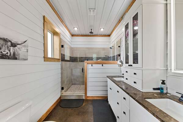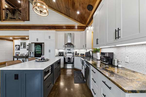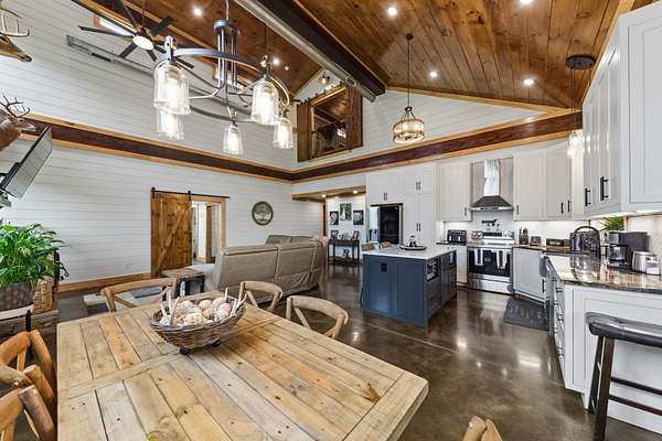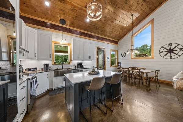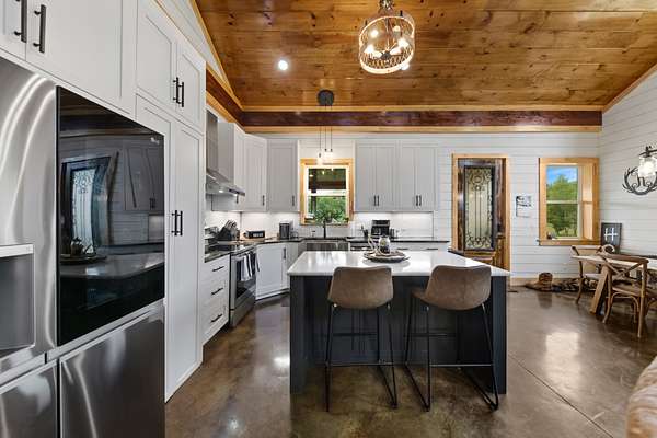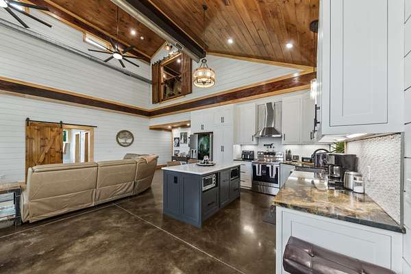 - Ceiling Fan(s), High Ceilings, Kitchen Island, Open Floorplan, Pantry