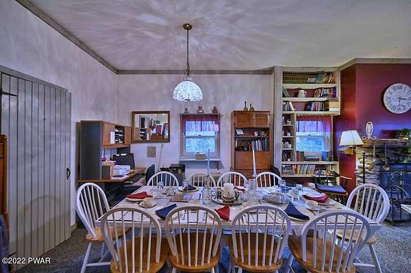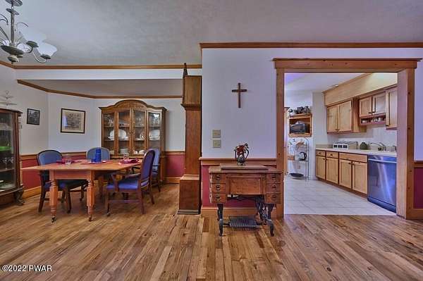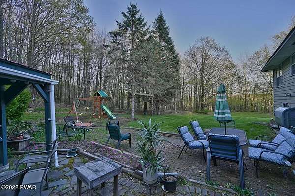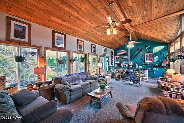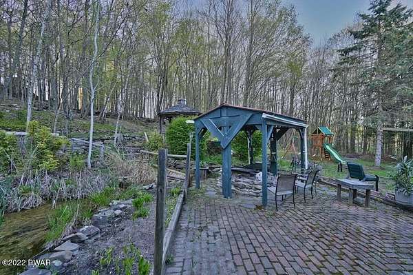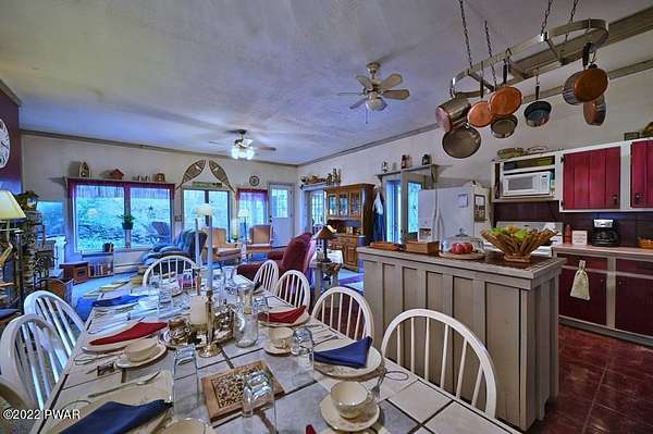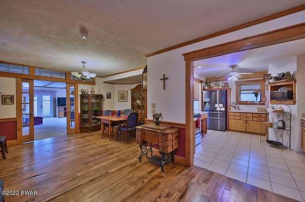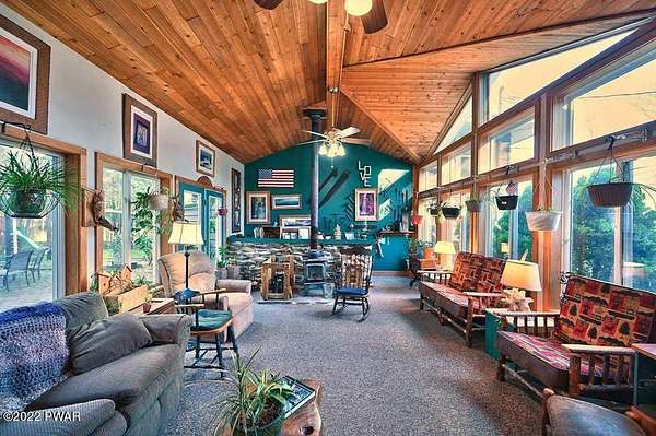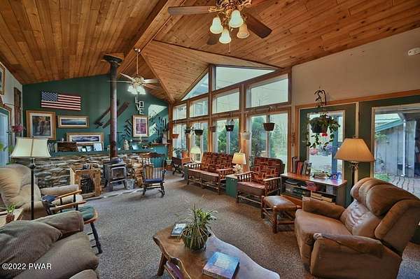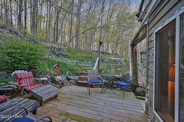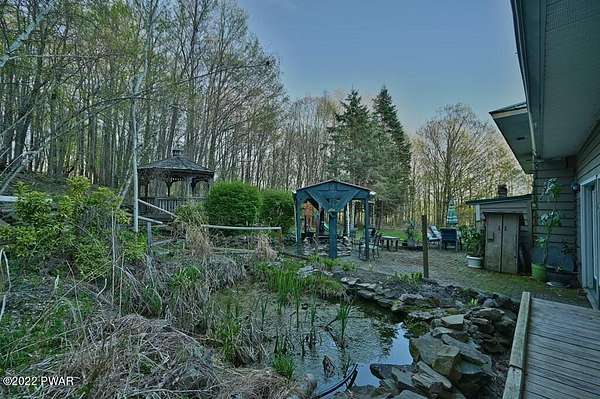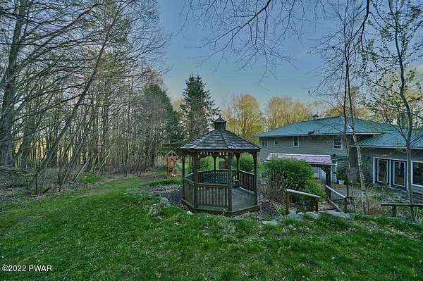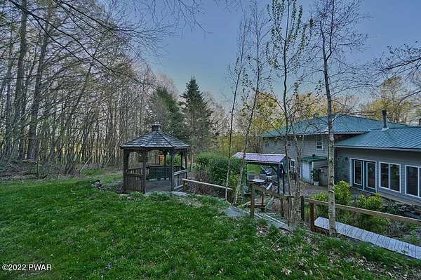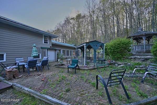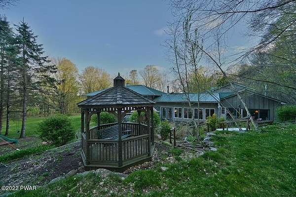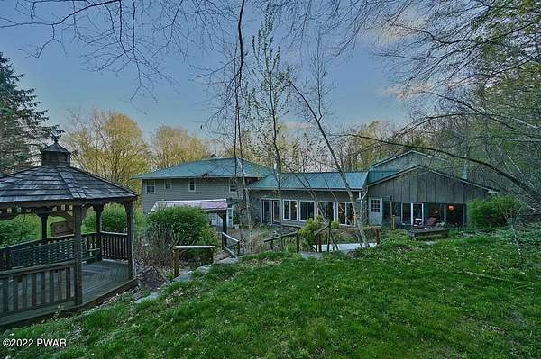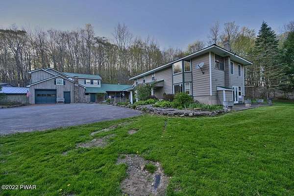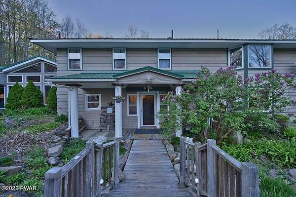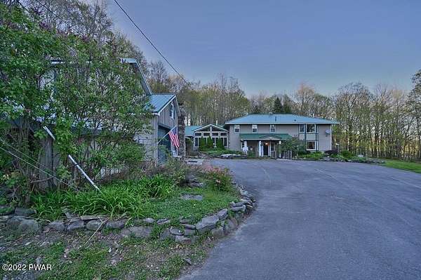 Welcome to your own private oasis. Two homes on over 2.57 acres connected by a lovely year round room with a wood-burning stove and windows to take in the views. Current owners are in-laws and have appreciated the closeness yet privacy this property has offered them. In the past, has also been used as an Airbnb as well as a Retreat Center. You will feel the charm the moment you step on the new trex deck to enter the first home. A foyer/mudroom greets you, wood floors, ceiling beams, kitchen , dining room and a large living room. 4 beds, 2 baths including a master suite with a bathroom and sitting room and a laundry area complete the second floor. The second house has an open family room with a newly renovated kitchen and dining area. Take the stairs up to the second floor where you will find 5 beds, 2 baths and a den/sitting room.Both homes have a rustic feel with some modern upgrades and touches. Once you have fallen in love with the inside, head outside to the decks, pavilion and walking paths. This property boasts serenity, privacy and the natural beauty that surrounds it. Less than two hours away from Philly and NY and 25 minutes from Elk, Camelback and Kalahari.