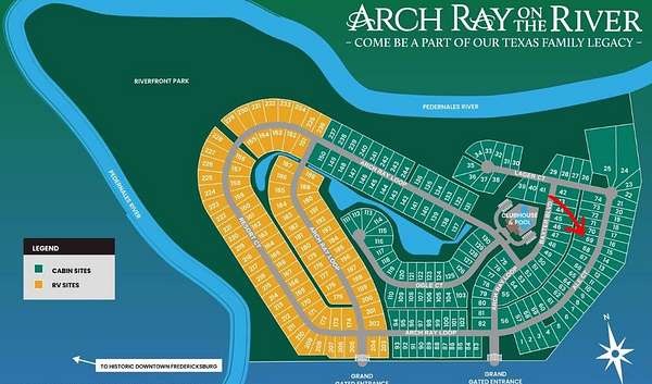 From downtown Fredericksburg, head east on US Hwy 290 for approximately 5 miles. Pass Arch Ray Restaurant, then the RV Park, then Turn into Arch Ray Resort at 4584 E US Hwy 290. and go through gates, turn immediate right and site is near end of the road on your left.