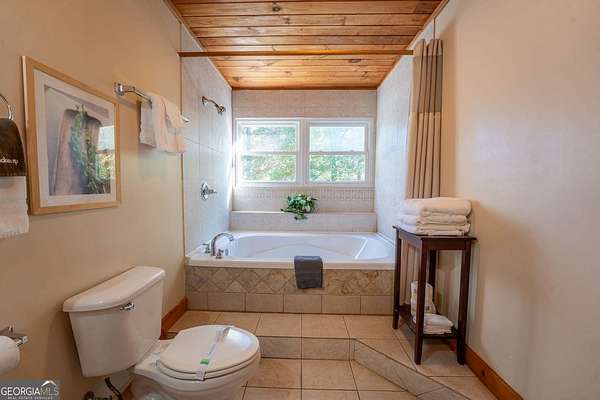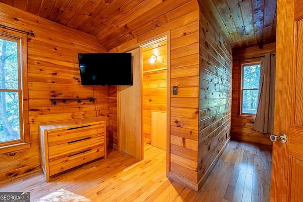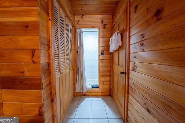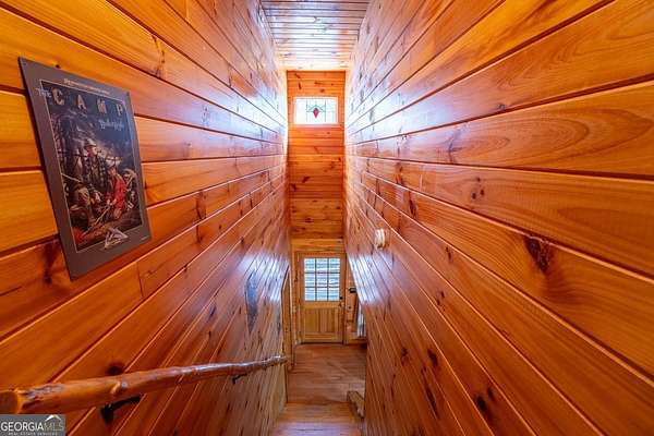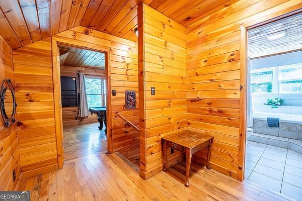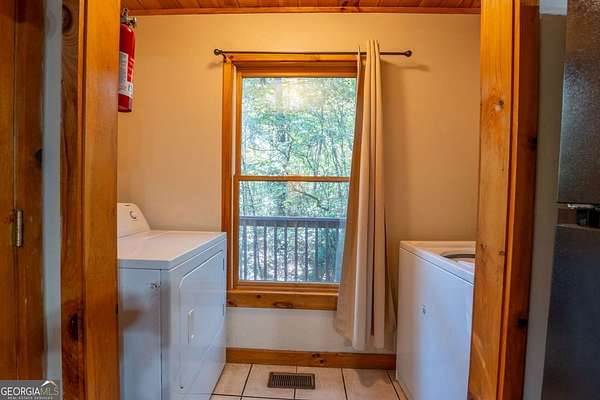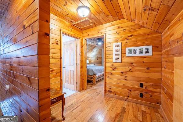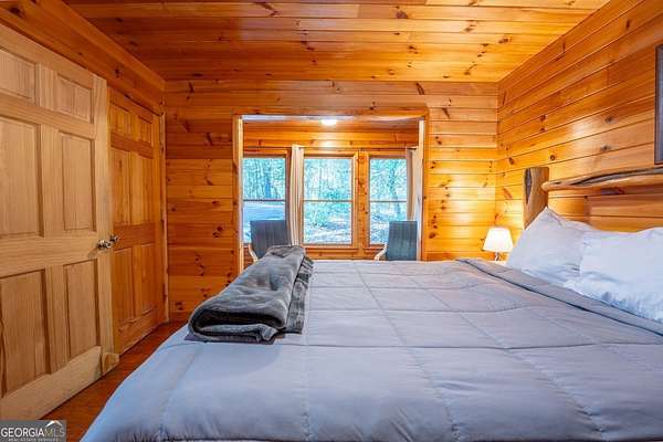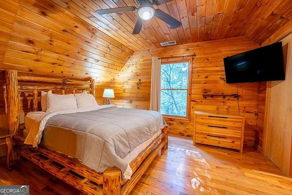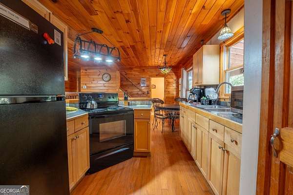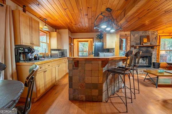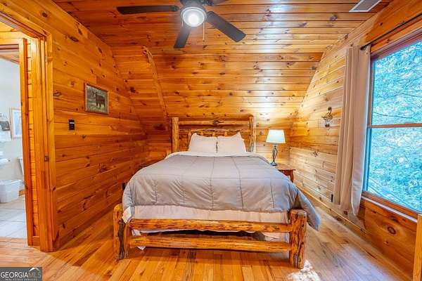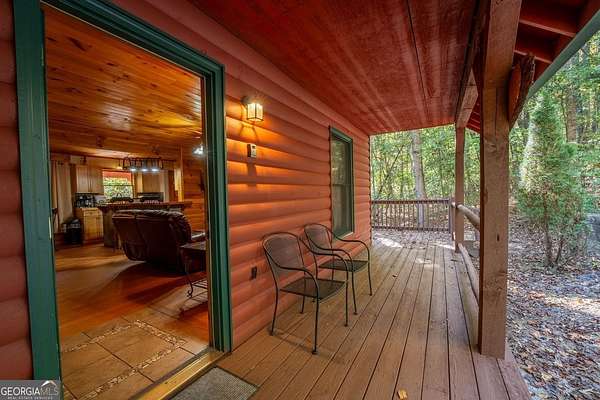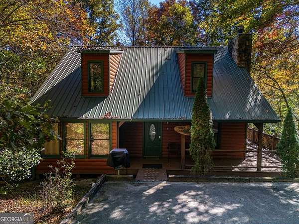 Welcome to Trout Lily! This charming 3-bedroom, 2-bath creek front cabin offers the perfect mountain getaway on 1.98 private acres. With 1,400 square feet of cozy living space, this retreat features half-log construction, a stunning fieldstone fireplace, hardwood floors, rustic finishes, and pine paneling throughout. The kitchen is both functional and stylish, featuring an electric range, tiled granite countertops, custom cabinetry, tile backsplash, and bar seating-perfect for entertaining. The primary suite on the main level includes a tiled shower and whirlpool tub. Upstairs, you'll find a hall bath with soaking tub and shower, plus two additional bedrooms-one currently set up as a game room with a pool table. Enjoy the great outdoors with over 1,000 sq. ft. of decking and covered porches, ideal for lounging, dining al fresco, or relaxing in the hydrotherapy spa while soaking in the peaceful woodland views. A fire ring adds to the charm-perfect for evenings of stories and s'mores by the fire. Adventure awaits just outside your door with a trail leading to the creek, creek frontage, and access to a mile of community walking trails throughout the development. Located in the Fern Meadows neighborhood, this property is convenient to Helen, Sautee, Clarkesville, and Cleveland, and only 90 miles from Atlanta-an ideal location for exploring the North Georgia Mountains. Currently part of a cabin rental program and approved for short-term rentals, Trout Lily also benefits from community water service and road maintenance through the Fern Meadows Association with an annual fee of $800. No HOA restrictions.