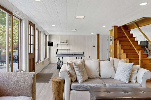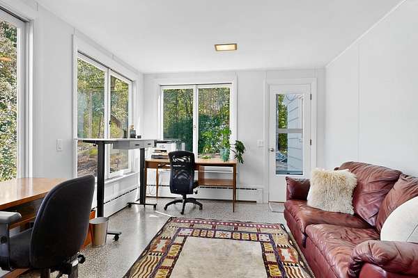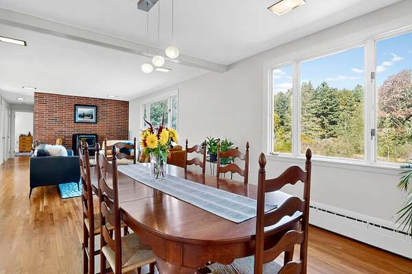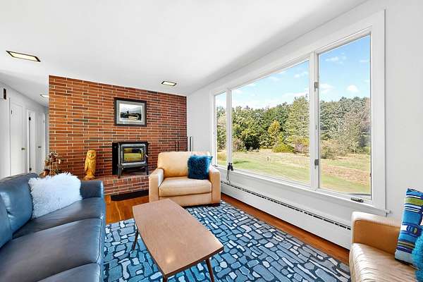 Welcome to 69 Falmouth Road, a serene mid-century modern retreat set on 8+ pastoral acres. Thoughtfully updated for modern living and effortless entertaining, this 2-3 bedroom, 2.5-bath home blends classic design with contemporary comfort. The sun-filled main level showcases sweeping views of the surrounding landscape. A spacious great roomaEUR"with open living and dining areas, a cozy woodstove, and expansive picture windowsaEUR"flows seamlessly into a chef-ready kitchen, perfect for entertaining and intimate gatherings. The generous primary suite offers a peaceful retreat with room for a reading nook or meditation space, while the original bathrooms bring a touch of retro charm. A flexible office (or optional third bedroom), plus a large laundry, pantry, and mudroom area, complete the main floor. On the lower level, follow the vintage ski wallpaper to a versatile finished space ideal for a family room, game room, gym, studio, or workshop - there is room for it all. A wall of windows opens to a beautiful walk-out patio framed by lush seasonal landscaping, the perfect foundation for your dream spa oasis with room for a sauna, hot tub, or pool. Outdoors, enjoy private nature trails that connect directly to the Falmouth Land Trust network. The property offers flexibility with potential to divide the acreage or keep it whole. Hobbyists will love the oversized attached 2-car garage plus a separate 4-car garageaEUR"perfect for vehicles, gear, or creative pursuits. More than a home, 69 Falmouth Road is a lifestyle. Come experience its magic for yourself.