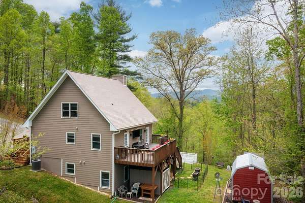 Charming mountain retreat 20 minutes from downtown Asheville, nestled on 4.66 beautiful. This adorable 3-bedroom, 2-bath cabin offers the perfect blend of privacy, comfort, and breathtaking mountain views. Enjoy peaceful mornings on the porch overlooking mountain views and evenings surrounded by nature. The spacious acreage provides room to garden, explore, or simply relax and take in the fresh mountain air. Conveniently located just a short drive to local amenities, dining, and shopping, this property offers the best of both worlds-seclusion without sacrificing accessibility. The main level features an open floor plan, a primary bedroom with an ensuite bath, and a vaulted-ceiling living room with a wood-burning stove. Upper-level loft features a large guest bedroom with a tongue-and-groove ceiling. The lower level includes another guest bedroom with an ensuite bathroom, a family room, and a gas fireplace. Exterior garden space and 2 large studio workshops wired with electricity, insulated with a loft for all your hobby needs. Whether you're searching for a cozy vacation getaway, a short-term rental opportunity, or a full-time homestead, this sweet mountain cabin is ready to welcome you home. This property is located in Buncombe County, Marshall. The proposed new Publix in Leicester is just a 10-mile drive. The property would make a great STR with most of the furniture included. Don't miss this rare opportunity to own your own slice of paradise!. Peace, privacy, and panoramic beauty await-all just a scenic drive from quaint Marshall and Asheville.
