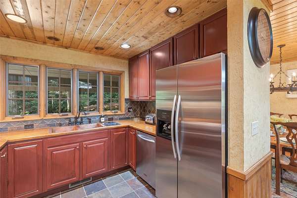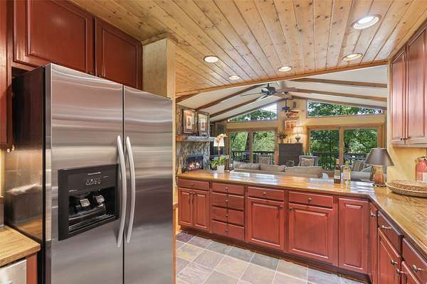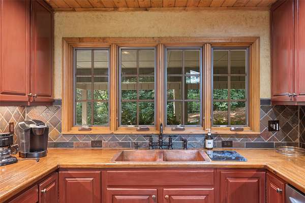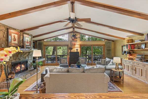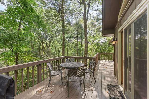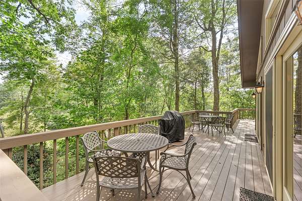 Classic Highlands Charm - Fully Furnished 2BR/2BA Home This beautifully maintained Highlands home captures the essence of mountain living with timeless charm and thoughtful upgrades. Featuring 2 bedrooms and 2 baths, the residence offers a vaulted living room with a stone fireplace fitted with gas logs, seamlessly flowing into the dining area and kitchen with gas range and newer stainless appliances. Glass doors flood the space with natural light and open to an expansive deck-perfect for entertaining or simply enjoying the tranquil setting. Hardwood floors run throughout the main living areas and bedrooms, complemented by tile in the baths. Both bathrooms feature slate tile, copper sinks, and rich wooden counters, while the primary suite boasts a steam shower. Modern conveniences add peace of mind, including safes in each bedroom and a full home security system. Additional highlights include a spacious double carport, storage/workshop below, custom draperies, beautiful rugs, and full furnishings with a full exclusions. Home is also equipped with a home generator. With a strong rental history and no restrictions, this property is ideal as a private retreat or an investment opportunity. The home is situated on two lots within a heavily wooded, private neighborhood, a true haven for nature lovers. The second lot provides opportunities for expanded privacy or the option to sell. All this just minutes from downtown Highlands, yet outside the city limits for added flexibility.