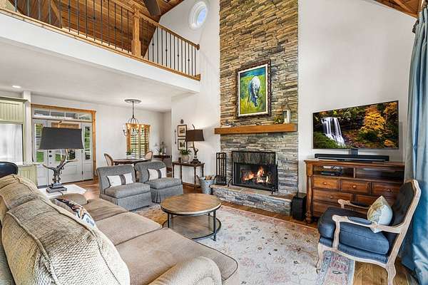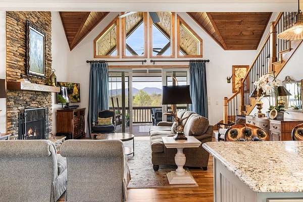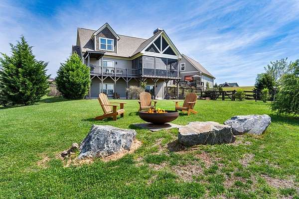 Custom Craftsman Mountain Oasis 3 bed | 3.5 bath | 3-bay garage | 3.81 private acres at the end of a cul-de-sac Perched with sweeping long-range mountain views to the south across a grassy yard and gentle stream, this custom home feels worlds away yet sits in a sought-after upscale neighborhood. Thoughtful and extensive custom hardscaping and softscaping with over 60 trees and shrubs create a true mountain retreat with unmatched privacy and serenity. Inside, the upgrades are endless: newly refinished solid white oak floors, a stacked-stone wood-burning fireplace with gas starter, solid-surface countertops, and nearly new high-end appliances. The open living area features oversized windows and doors that open to a spacious screened porch and grilling deck—perfect for effortless indoor-outdoor living. The primary suite is on the main level, with two additional bedrooms (each with private full baths) on the upper and lower levels, plus a powder room. A conditioned office/creative studio sits above the garage. Recent updates including fresh paint inside and out, a brand-new roof, professionally cleaned air ducts, and new loft carpet make this 2016-built home feel brand new. Enjoy multiple outdoor entertaining spaces with breathtaking views, a fully fenced pet yard, and a custom firepit ideal for stargazing under the Milky Way thanks to minimal light pollution. Just 2 hours from Atlanta, Greenville, Chattanooga, and Asheville, you're minutes from Lake Chatuge, hiking trails, local wineries, restaurants, coffee shops, and the John Campbell Folk School—yet enjoy the peace of a low-key rural lifestyle. Too many luxury details to list here—see them all in the professional photos and video. Schedule your private tour today and experience this rare mountain gem in person! Also available separately is the adjoining 1.15-acre Lot 21 with matching mountain views.
