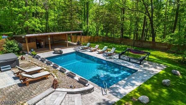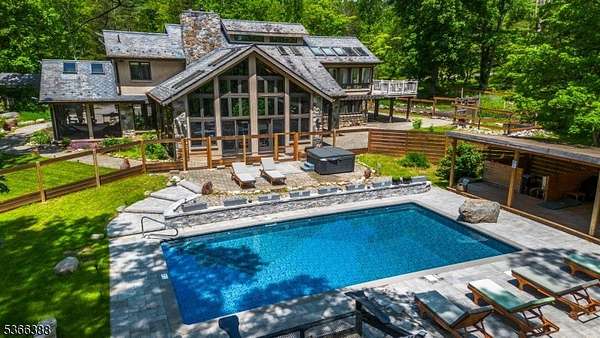 This incredible estate with gated entry offers a private retreat just one hour from Manhattan and major airports. The meticulously landscaped surroundings boast a beautiful stream, woodlands, and plenty of room to enjoy nature, and also back up to preserved land. A new saltwater pool and hot tub adjacent to the family room area provide quiet, luxurious comfort. The interior design has been thoughtfully designed with all custom finishes and features. The gourmet kitchen with Sub-Zero and multiple ovens is easy to work in and perfect for entertaining. This home also features an outbuilding that serves as an office or studio. The living space is generous and there is lots of light. The bedrooms are spaced apart for privacy, and the primary suite is luxurious and spacious. The gym and sauna are new and feature all of the latest equipment. This is available for a quick close.