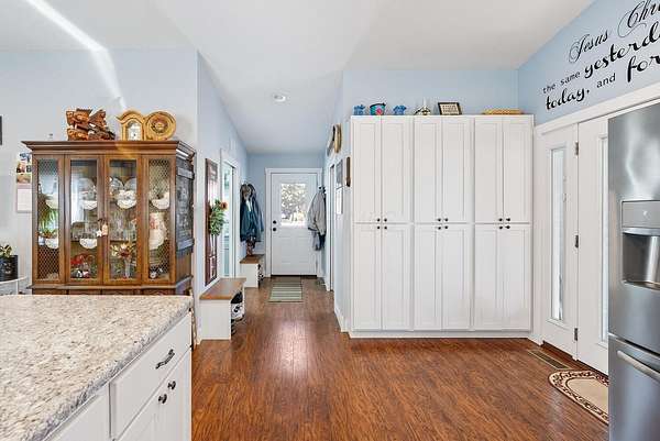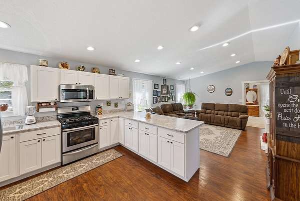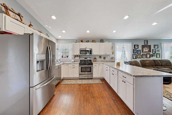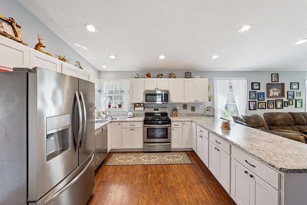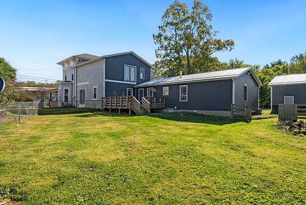 ENDLESS POSSIBILITES ON 4+ ACRES! 5 bedrooms, 4 full bathrooms, updated kitchen (2025), a garage (2020) for cars and toys and two mini barns for storage or animals. Central A/C and gas furnace (2019), new first floor bathroom (2025), kitchen and mudroom floor (2025) and a back deck (2025). There is a 1 bedroom in-law suite attached to the house with separate entrance (2018) with a kitchen, 1 bedroom with a master bathroom, living room and an additional full bathroom. Many fruit trees and plants on the property. Room for rabbits, chickens, etc., too!