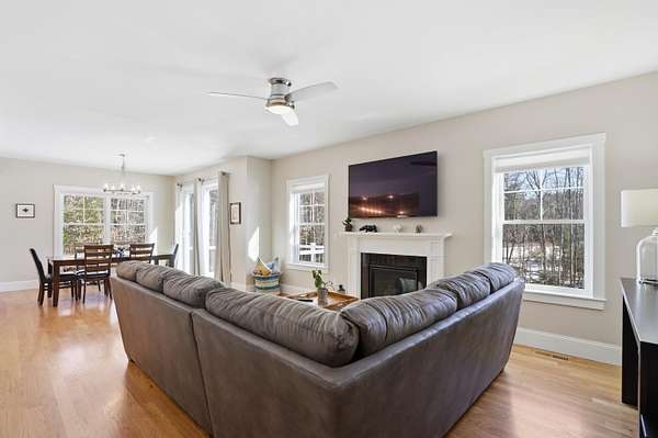 LIKE NEW CONSTRUCTION WITHOUT THE WAIT OR HOA!!! Welcome home to 69 Priest Road, your peaceful sanctuary. This impressive better-than-new, open-concept 3-bed, 2.5-bath, 2256 sq ft Foxglove Farmhouse with a 2 car garage, sits on 2.4 quiet acres and offers everything you have been searching for. Imagine gathering around the gorgeous kitchen island in your charming sun-saturated kitchen, complete with granite countertops, soft close Shaker cabinets and stainless steel appliances. The open dining area features a generous amount of room for a large-scale table and includes oversized sliders leading to a low-maintenance composite deck and a private yard perfect for your Memorial Day cookout! Adjacent to the dining area, you can cozy up by the gas fireplace in the spacious living room. Kick off your shoes and hang up your coat in the convenient mudroom area near the garage entrance. The built in cubby-hole storage, bench as well as a half bath are so convenient! Also on the first floor is a study complete with a single French door. Upstairs, the Primary suite features a sizable walk-in closet and en-suite bathroom with double sinks. Two additional light-filled bedrooms share a second full bathroom. The 2nd level also includes a large laundry nook and if 3 bedrooms are not enough, no worries, there is a finished versatile Bonus Room! Exceptional hardwood flooring throughout, 9ft ceilings, multi-zone heating/central AC, tilt-in windows and tasteful tile further enhance its appeal. Radon air and water filtration systems are already taken care of for you! THIS HOME IS EXQUISITE!!! Easy commute to Concord, Portsmouth, the ocean beaches and only 15 Mins to UNH Durham campus. 1 hr to Boston. Nottingham is home to Pawtuckaway State Park. Explore nature’s playground, rock climb, boat, camp, hike, bike or beach. Check out the Virtual Tour/walk-through video! COMING SOON. Showings will begin at the Open House on Saturday and Sunday, April 11th–12th, from 10AM to 1PM.