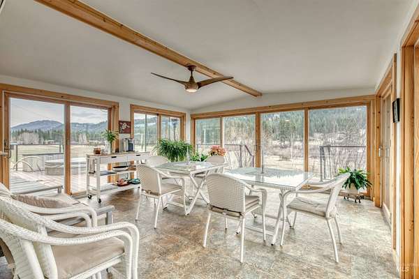 Nestled along the scenic Middle Fork of the Payette River, this remodeled ranch-style home brings rustic charm, peaceful outdoor living, and a touch of holiday magic to a serene horse property. Start your mornings by the river or in the cozy sunroom, watching winter light filter through the trees. Evenings are perfect for stargazing from the outdoor hot tub or unwinding in the indoor jet tub after a day of seasonal fun. A separate apartment offers space for guests or rental income--ideal for holiday visitors. The barn/shop supports hobbies or equestrian needs, and the property sits just six miles from national forest access, close to golf, kayaking, ATV trails, and year-round recreation. Enjoy festive community events and local art at the Garden Valley Center for the Arts. Wildlife is abundant, from elk and deer to bald eagles and sandhill cranes. With HOA-maintained roads, you'll enjoy reliable year-round access to this warm, inviting retreat. Insurance sample available in documents.