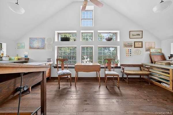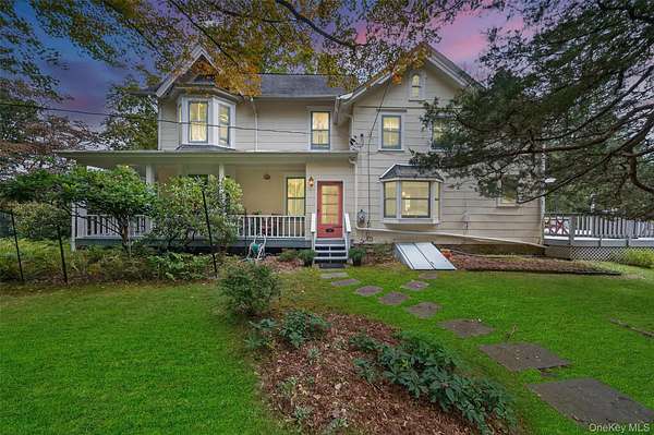 Original Shuart Homestead A rare opportunity to own the historic Shuart Homestead, set on over 1.5 acres set back and accessed by a private driveway. This one-of-a-kind property offers two versatile buildings. The Main home and a striking barn, creating endless possibilities for living, working, and entertaining. Main House (c.1870s, thoughtfully updated): Five spacious bedrooms, inviting living and dining rooms, den, bright kitchen, wraparound porch, and a large deck for outdoor gatherings. Second Building (The barn - renovated 1995, approx. 1,400 sq. ft.): Main level includes a 350 sq. ft. office and attached 2-car garage; upper level features a sun-filled sitting room, studio with kitchenette, two additional rooms, and half bath. Perfect as a guest house, art studio, religious studies or home office. Showcasing dramatic architectural details, abundant natural light, central air and heating. Grounds: Enjoy a basketball court, fenced vegetable and flower gardens, and plenty of open space. Located just 24 miles from New York City, the Shuart Homestead combines historic charm, modern comfort, and exceptional flexibility.