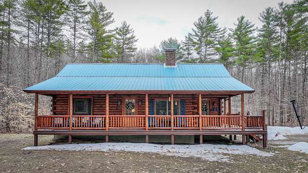 Well-maintained 3 bedroom, 2 bathroom log home situated on a private 6-acre lot in the desirable Fryeburg School District. This property offers a peaceful setting with a classic Maine feel, featuring a full-length covered front porch ideal for relaxing and enjoying the surrounding natural landscape. The home offers a functional layout with an open living area, providing comfortable space for year-round living or a seasonal retreat. The expansive lot allows for privacy, outdoor recreation, and potential for future use. Conveniently located with easy access to local amenities and four-season activities. Close proximity to hiking and snowmobile trails, as well as skiing at Pleasant Mountain. Just a short drive to shopping, dining, and services in Conway. Ideal for a primary residence, vacation home, or investment property.