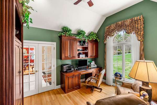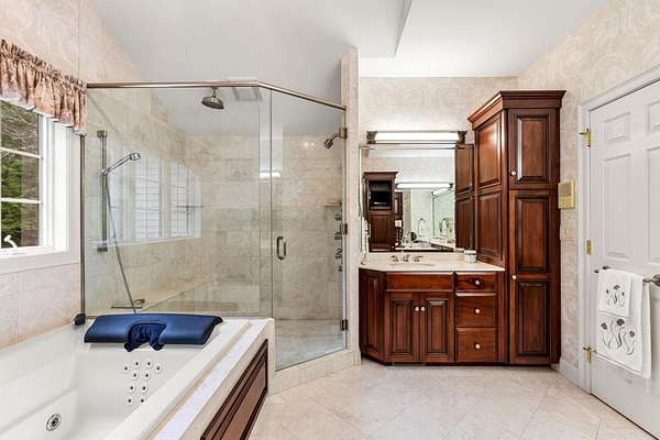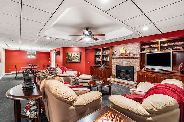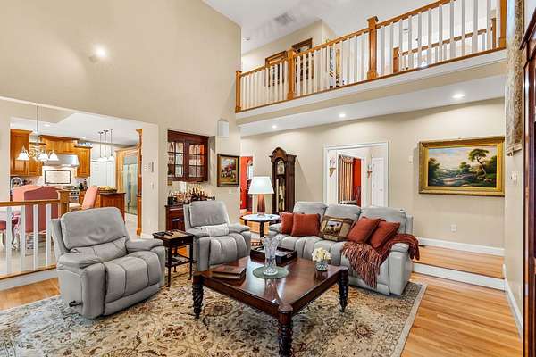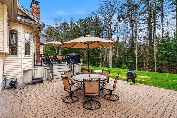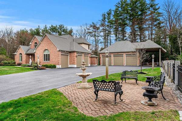 Custom-built brick estate behind stone pillar gates on 3.78 private acres in Candia. This 5,813 sq ft Georgian-inspired Colonial Revival offers 3,785 sq ft above grade plus a fully finished 2,028 sq ft lower level. A rare combination of craftsmanship and amenities. Four bedrooms and four bathrooms (two full, two half) unfold across living spaces anchored by multiple gas fireplaces, radiant in-floor heat, and 3-zone central AC. The gourmet kitchen features Sub-Zero refrigerator, Wolf range, and premium stainless finishes. The finished lower level lives as a private retreat — home theater, fitness studio, or extended guest suite. The grounds were engineered for quiet enjoyment: private pond with water feature, gazebo, brick patio, full irrigation with rain sensor, and a dedicated RV driveway with electrical hookup for motor homes, boats, or trailers. Six-car setup solves the garage question definitively. A 23x34 attached garage plus a separate 36x36 carriage house deliver oversized bays for collectors, trucks, or workshop use. Both structures are heated, epoxy-floored, dehumidified, and wired with dedicated subpanels for workshop-grade equipment. Ideally positioned — 10 minutes to Manchester, 20 to Concord, 30 to the Seacoast, 1 hour to Boston. SAU 15; Pinkerton Academy for secondary. Pre-listing inspection complete with full documentation available to qualified buyers. Offered unfurnished; seller is open to offering home fully furnished or selling select pieces at buyer's preference, with all window treatments included. Listing agent discloses a family relationship with the seller. All parties represented equally under standard agency obligations.