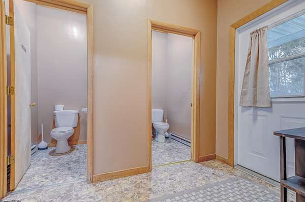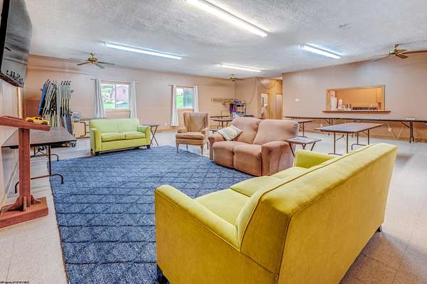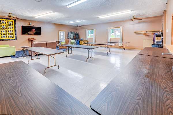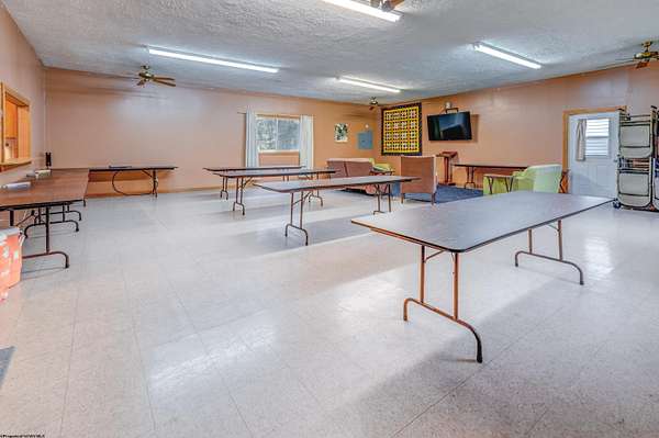 LOTs of OPTIONS! House used to be a parsonage but can be yours, PLUS a Catering Hall + LAND w/ NO Zoning! Flowing flooplan from big Living Room to wide + adaptable Kitchen + Dining combo area. 2 BRs on 1st floor with a Full Bathroom. Primary BR upstairs w/ office/closet room as well! Home has NEW electric panel. Basement area has 1-car garage too! The Catering Hall comes with large Kitchen w/ double-oven, 2 Bathrooms + HUGE hall space. Chairs + tables to fit 60 people. Land has plenty of space for parking + ALL the toys! Woods are great for privacy, hunting, or expansion… Use as you desire! Currently home is rented month to month w/ long-term tenant.