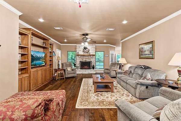 Welcome to this stunning custom-built home situated on 133 pristine acres of East Texas countryside. This extraordinary property offers a rare combination of luxury living and agricultural potential, making it the perfect fit for families, outdoor enthusiasts, and ranchers alike. Thoughtfully positioned well off the road and nestled into the treeline, this home offers privacy, peace, and panoramic views. Enjoy 35% open pastureland ideal for grazing or hay production, and 65% mature timber that provides shade, beauty, and outstanding wildlife habitat.