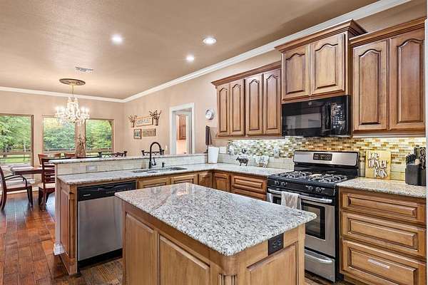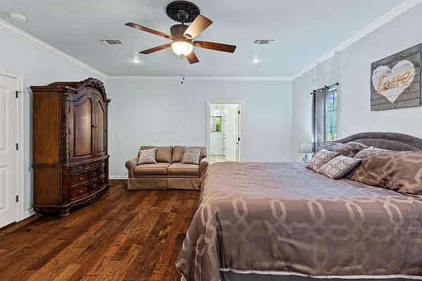 As you approach the home, you're greeted with open pasture views that set a serene tone. Step inside to discover timeless farmhouse charm with modern comforts throughout. The spacious layout includes multiple bedrooms, each with its own private ensuite bathroom and large walk-in closet--perfect for families or hosting guests. The heart of the home is a beautifully designed kitchen featuring custom cabinetry, expansive counter space, abundant storage, and a walk-in pantry.
