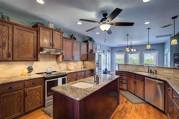 The 3,361 sq ft custom residence unfolds entirely on a single level with space for every need. You will appreciate the timeless brick and stone façade overlooking gorgeous natural landscape from every angle. The primary suite is a true retreat, with trey ceiling, seating area, huge walk in closet, and ensuite spa-like bath with separate vanities, tiled shower, slipper tub. Four other generous bedrooms each offer private ensuite baths and walk-in closets, creating individual retreats.