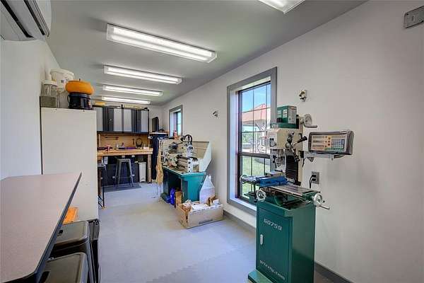Beyond the residence, the property reveals its true magnificence. The serene pond anchors the pastoral vista, while a 100-yard shooting range with covered pavilion awaits the sporting enthusiast. The 30'×40' shop complex includes a climate-controlled finished workshop, full bath, and 50-amp RV hookup—a dream for collectors and hobbyists.
