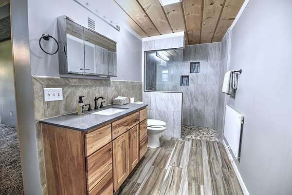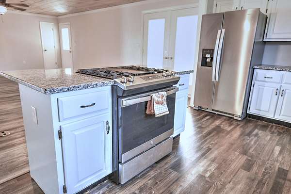 - Breakfast Bar, Ceiling Fan(s), Primary Downstairs, Soaking Tub, Walk-In Closet(s)