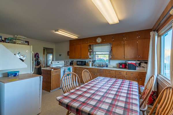 There is a 50? x 1-' shop building and a smaller three bedroom home that are in good condition, along with several other out buildings that are definitely usable for livestock, storage or what ever you may desire.