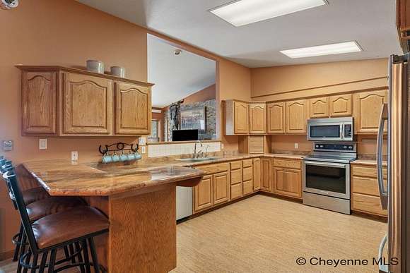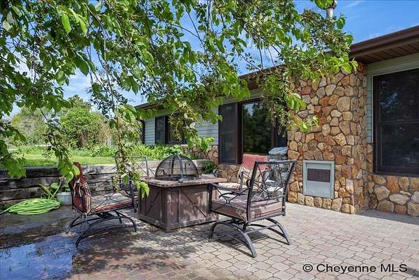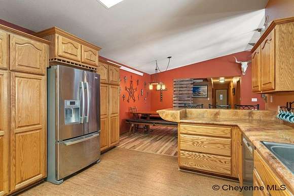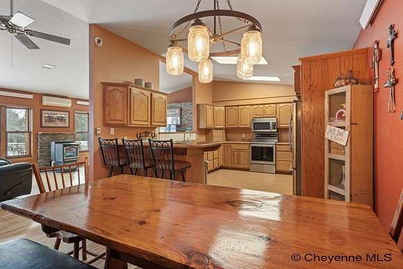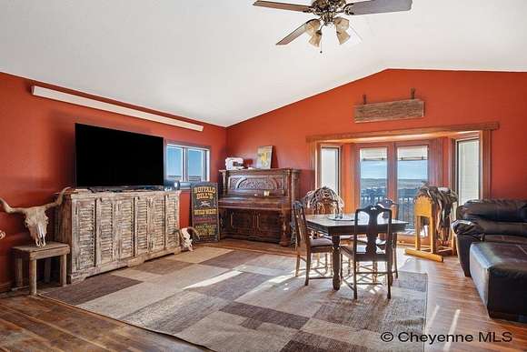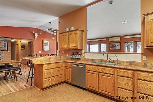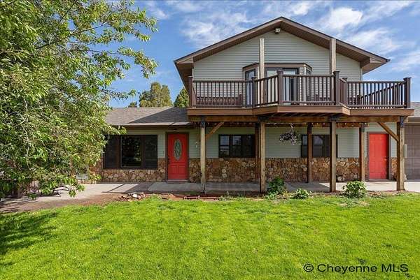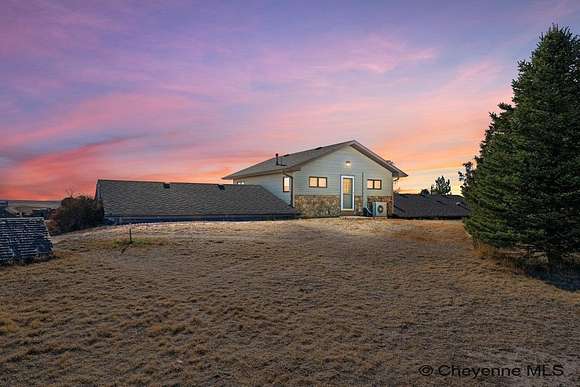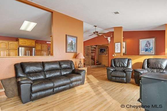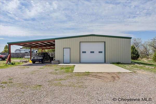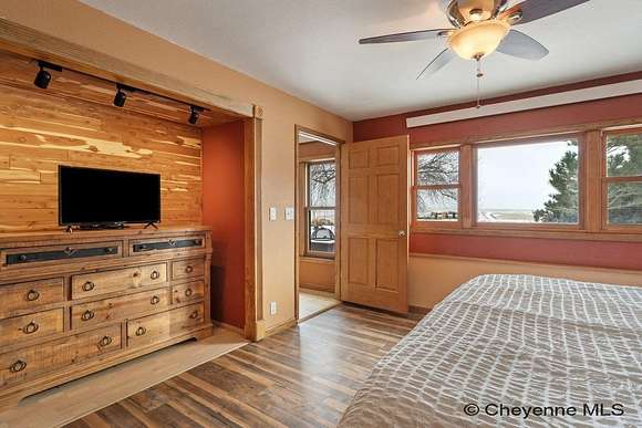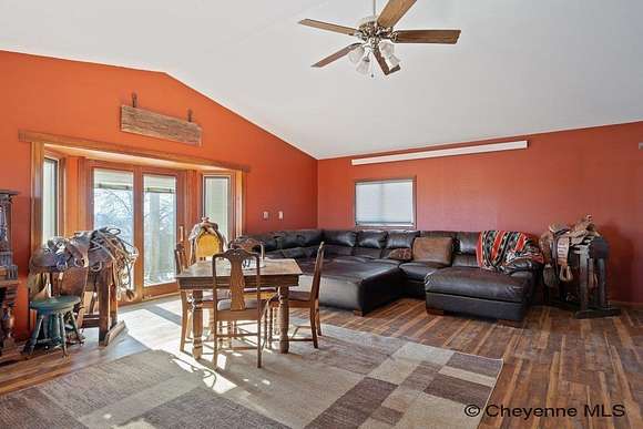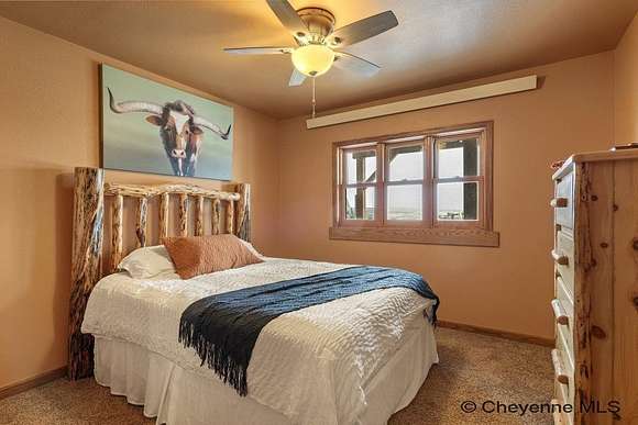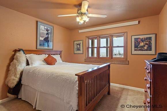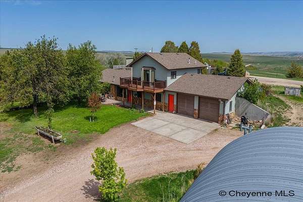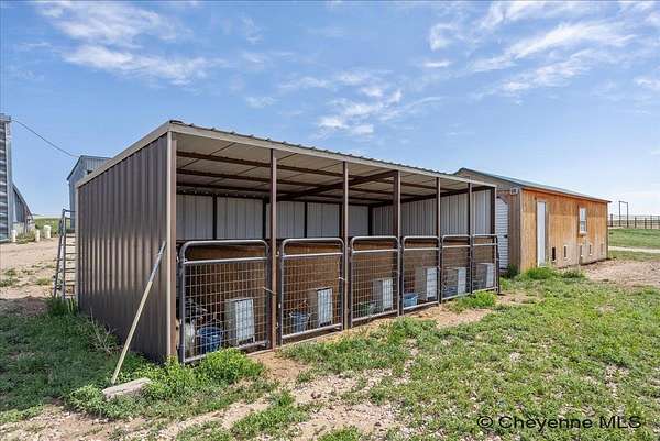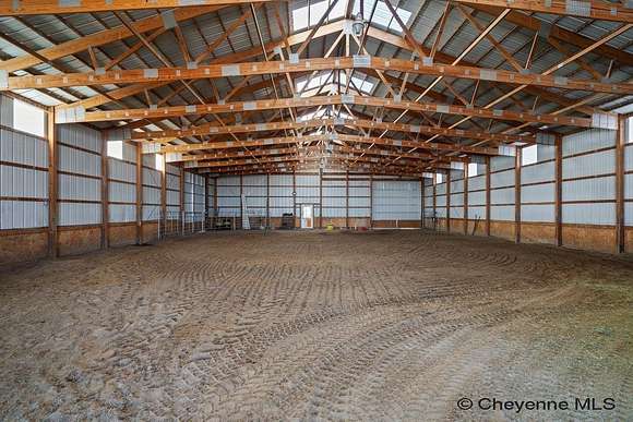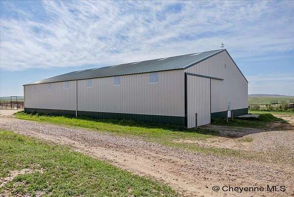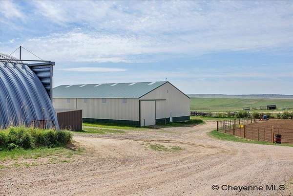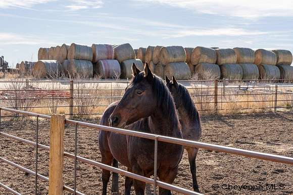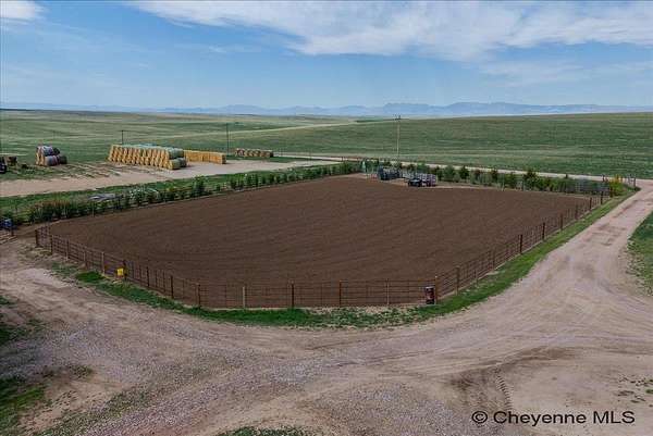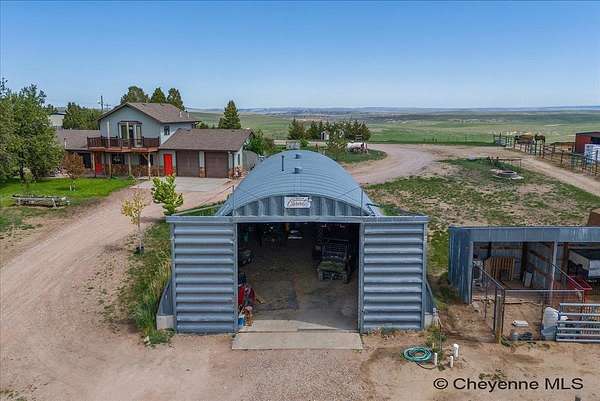 The 240-acre Peak View Ranch is a rare find, conveniently located between Guernsey State Park and Wheatland, Wyoming. Nestled behind an established tree row on a county-maintained private road, this exceptional property offers a perfect blend of functionality and rural charm. The three-bedroom, two-bathroom berm home is thoughtfully designed for efficiency and comfort, featuring: Fabulous south-facing windows that maximize natural light and passive solar warmth. An open floor plan that enhances the sense of space and flow. A spacious country kitchen, perfect for entertaining and daily living. Primary suite with luxury amenities, including a large shower, lighted mirror, and private sauna. Two generously sized guest bedrooms, each with sunny south-facing windows. An upper-level family/rec room that doubles as an office space, complete with a bar and deck offering incredible views of the Laramie Peak mountain range. Water & Landscaping: A central well, permitted for domestic, livestock, and irrigation use, ensures reliable water access. The application for well permit allows MAXIMUM volumetric quantity 781 acre feet of water to be developed and beneficially used per calendar year.The tree rows feature a drip irrigation system, while the well-maintained yard boasts a sprinkler system and vibrant perennial flower beds, adding beauty and convenience. Equestrian & Livestock Facilities: Designed with both versatility and efficiency in mind, Peak View Ranch includes: 90' x 60' Indoor Riding Barn complete with an 8' x 16' tack room, this space is ideal for training, riding, or calving multiple cattle at once. A 32' x 50' Seven-Stall Barn which is perfect for calving heifers or cows, equipped with a head catch for added convenience. Well-Designed Working Pens, built to hold 400 head, these pens feature durable pipe fencing and gates, with water already pulled to the area. Additional Structures & Features: The heated shop with plumbing & painted concrete floor is a versatile space ready for a workshop, storage, or other uses. The dog kennel & chicken house are perfect for those looking to maintain a small homestead. The large round top building with concrete floors is ideal for equipment storage or additional workspace. With great attention to detail, this ranch is well-equipped for livestock, equestrian pursuits, and country living at its finest.