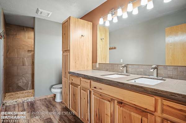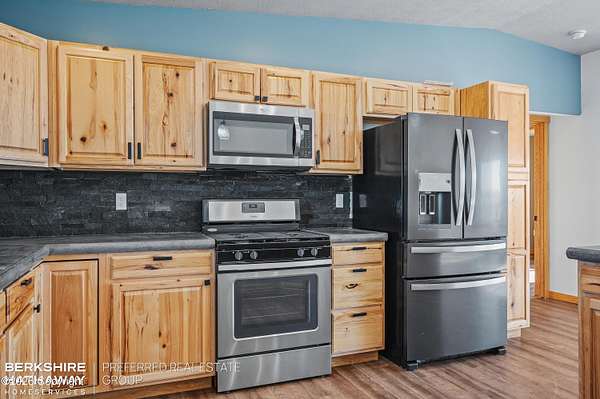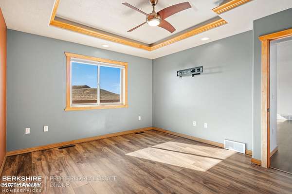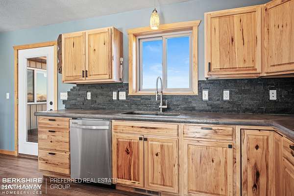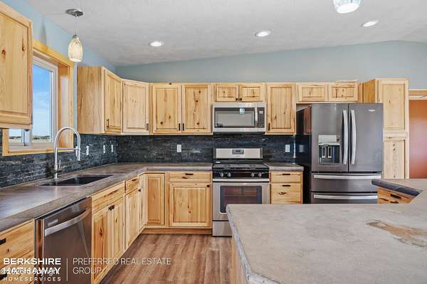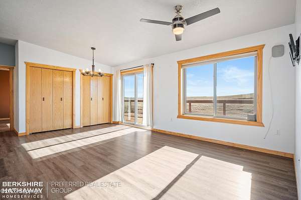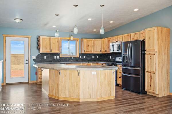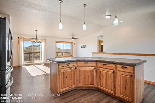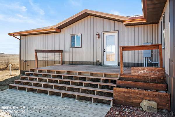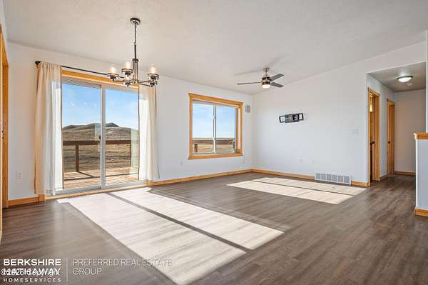 Est $3,431/moEnjoy space, privacy and Wyoming views. Spacious 3,431 sq. ft. home featuring 5 bedrooms and 3 bathrooms. Open - concept kitchen, dining and living area, featuring custom cabinets and concrete countertops. The primary suite includes a walk-in tile shower and walk-in closet. Finished walk-out basement adds extra living space and easy access to the out doors. Breezeway mudroom connects to a 30x 56 attached shop with concrete floor, electric and 12-ft sidewall. 20.28 acres with private pond, room for animals or simply enjoying country living close to town.
