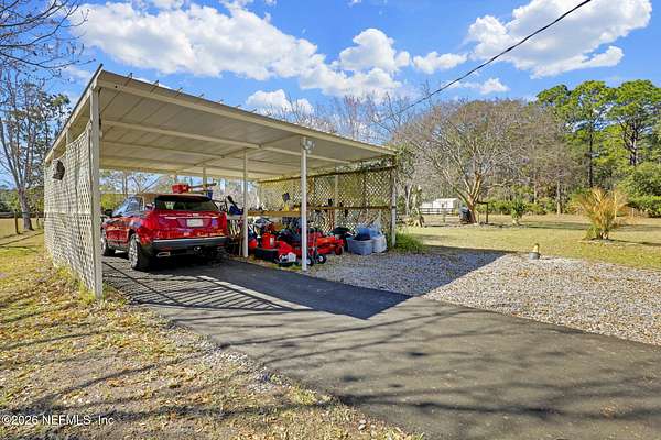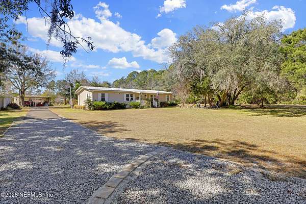 ACREAGEPONDAMAZING LOCATION This 3 bed/2 bath home is nestled on a HUGE LOT with plenty of acreage, offering a secure and private lifestyle with a GATED YARD and a GATED DRIVEWAY. The long driveway provides extensive parking and leads to a huge covered CARPORT, ensuring there is plenty of SPACE TO STORE AN RV OR BOAT. Inside, the home features a SPLIT BED FLOOR PLAN designed for privacy. This home is perfect for entertaining, featuring a BONUS ROOM that can serve as an office or family room. The kitchen boasts a stylish backsplash, a breakfast bar, and a unique BOOTH STYLE BREAKFAST NOOK. Outside, you will find a HUGE YARD and a POND, complete with a spacious covered front porch and a covered back porch. For those who love the outdoors, there's additional patio space and 2 covered spaces right by the pond for lounging with peaceful water views. Plus, you're located close to US 1 for travel convenience, and just a short drive to historic Downtown St Augustine. Don't miss out!