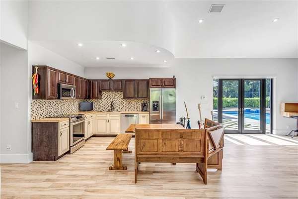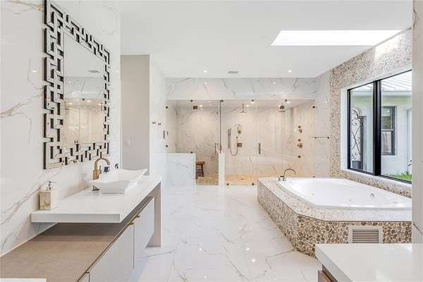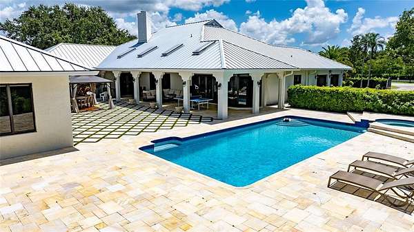 Sited on nearly 2-acres in the Estate Section, this 8,084+- total sq ft residence with guest house offers the ultimate rural retreat. Updated with a sophisticated modern European aesthetic, this 4-Bedroom residence & separate 2-bedroom guest house, complete with a full kitchen, living & laundry, is perfect for hosting visiting family/guests. Luxe chef's kitchen, with adjoining pool-view breakfast room, has work island & dining extension, finished with exotic zebra-wood cabinetry & professional-grade appliances. The master suite offers pool-courtyard access, a spa-like quartz bathroom with jetted tub, double vanities, walk-in shower, separate steam room & water closet. Privately hedged & gated this estate appeals to equestrians, nature enthusiasts, and VIP's seeking privacy. 2024 Metal Roof