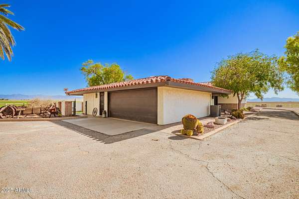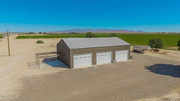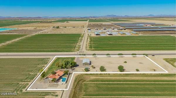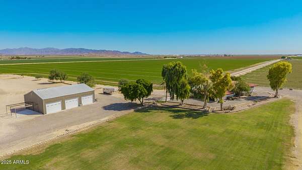 A perfect pairing of rural residential living + future opportunity on 4.11 fully fenced acres! A beautiful homestead property with a City of Buckeye General Commerce zoning, located in the scenic Palo Verde area of Buckeye. Ideal location with acreage, ranch-style home, detached 3-bay metal insulated shop, swimming pool & an on-site well. Easy access to I-10. The tri-level SFR includes 4 bedrooms, 3+1/2 baths, vaulted ceilings, abundant natural light & cozy fireplaces in both main living room and lower-level family room. This property benefits from current residential use under its GC zoning-an ideal setup for flexibility in use or future development. Two parcels 504-38-021B + 022K. A portion of property has a first right of refusal. Please allow 4 days for Seller's response. The primary suite is a true retreat, boasting a walk-in closet and a spa-inspired bathroom with dual sinks, quartz counters, a glass-enclosed shower, and a freestanding soaking tub. A bonus room with skylights offers flexibility for a home office, studio, or game room. Outdoors, the fun continues with a sparkling diving pool, spacious covered patio, and endless views of the mountains. With room to spread out and modern comforts at every turn, this home offers a unique blend of luxury, charm, and space to breathe. This one has it all! Come experience it for yourself!