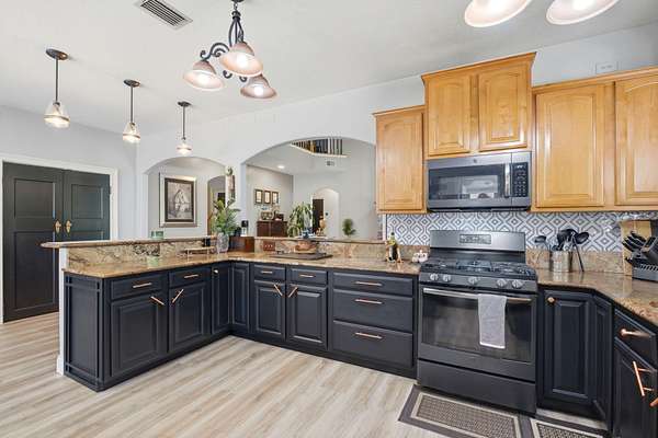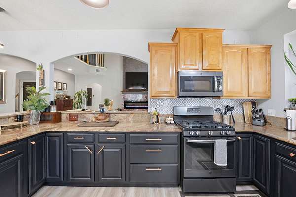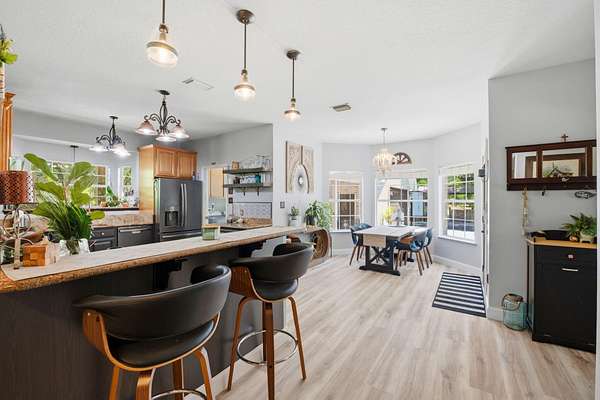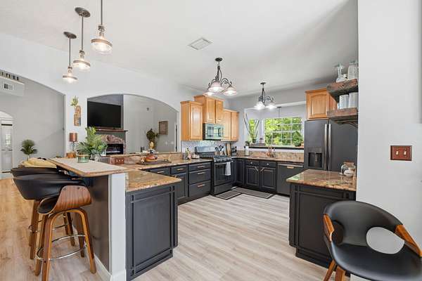 - Breakfast Bar, Ceiling Vaulted, Fireplace, Floor Laminate, Floor Tile, Floor Vinyl, Pantry, Renovated, Split Bedroom, Washer/Dryer Hookup, Window Garden, Window Treatmnt Some