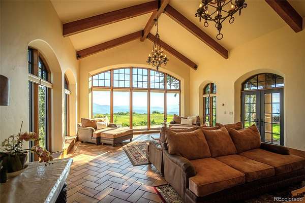 Located at the absolute end of the road in a small gated subdivision of nine 35 acre tracts surrounded by a 10,000 acre ranch and BLM land. A large portion of the surrounding land is conserved ensuring continued privacy and wide open views. There are unobstructed views of the mountains and valleys for literal miles. True dark sky nights and complete privacy. The 35 acres is a mix of open meadows and aspen groves complete with a perfect ski and tubing hill and plenty of trails to share with the only frequent visitors; the elk, deer, and other wildlife. This 35 acre property truly feels like the headquarters of a large ranch. 8,656 SF Tuscan style home with 6 bedrooms, 6 bathrooms. The primary master suite is on the main floor and features a private balcony, and an attached library and office. Secondary master on the upper level has a media/game room attached. Four additional bedrooms on the lower level offer privacy for family or guests. Although listed as basement all of the lower level rooms are entirely above grade and the largest room includes a balcony. The attention to detail is evident throughout the home's features including artisan woodwork, wrought iron banisters and handrails, arched window and door openings, oversized plank doors, and more. An over-sized three car attached garage provides plenty of parking and storage plus a lower level workshop with ground level access and small garage door for projects or additional storage. Horse friendly property with a 4 stall barn and fenced paddocks located at the upper end of the property and plenty of riding on the property and more trials on the BLM land one mile from the barn. Amenities are nearby with Eagle, Gypsum, and Edwards within a half-hour drive. Beaver Creek and Vail Ski Resorts are 18 and 26 miles from the door. Eagle Valley Regional Airport is 23 miles, Grand Junction Regional Airport - 2 hours, Denver International Airport - 2.5 hours.
