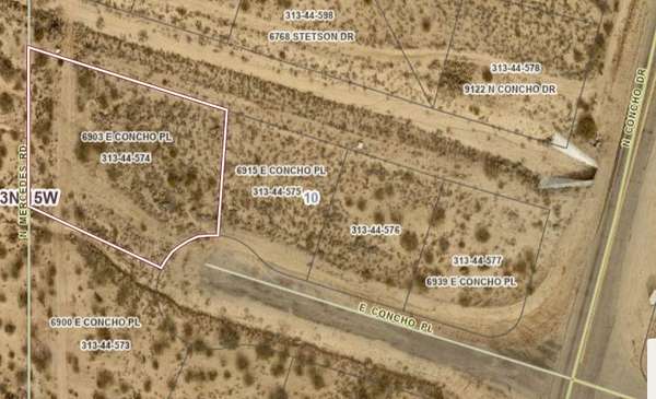 Route 66 North of Kingman to Concho Dr, left on Concho Way, lot is on the end of the cul-de-sac.