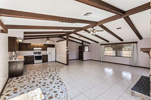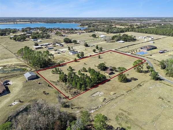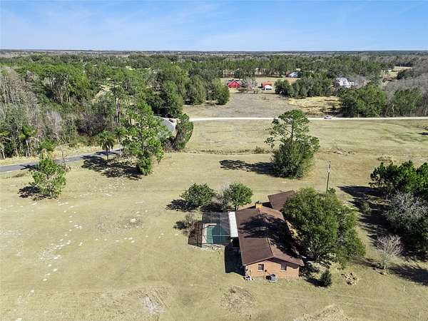 You're about to discover a rare opportunity to own a well-positioned home on five high-and-dry acres in Clermont. Tucked back off the road, this 3 BR, 2 BA property offers privacy, flexibility, and room to live the lifestyle you've been dreaming about... yes, you can bring your cows. The home is thoughtfully placed toward the east side of the property, preserving wide-open acreage ideal for fencing, grazing, crops, or future barns and corrals. There's ample space to maneuver trucks, trailers, and equipment, while strategically placed rear trees provide natural privacy and shade without limiting usability. Inside, the living spaces were ahead of their time. The expansive great room features a striking stone wood-burning fireplace, and the generously sized kitchen offers excellent renovation potential. With only a few simple divider walls removed, you can easily create a modern open-concept kitchen, dining, and living area with a large island. For a buyer who's even moderately handy, this layout allows for an easier, more affordable renovation than most older homes. All bedrooms are located toward the back of the home for added privacy, with additional flexibility to reconfigure or expand the primary suite if desired. Step outside to a screened-in pool, perfect for unwinding at the end of the day. A detached 576-square-foot two-car garage is connected by a breezeway that could easily be converted into a covered outdoor living space, while the garage itself offers great potential as a mancave, workshop, or farm shop. This wide 330' x 640' lot is a rare find and feels larger than five acres, as many similar-sized parcels are long and narrow. The home sits approximately 325 feet off the paved road, offering privacy while still being just off CR-561 and about 15 minutes from shopping, dining, and all that Clermont has to offer. For buyers seeking additional land or a future build site, the same owner is also selling a nearby 10-acre high-and-dry vacant parcel (MLS #G5107562), located approximately 550 yards down the road--mostly cleared with a dozen trees and well-suited for building, livestock, or agricultural use. Properties with this combination of wide, usable acreage, smart placement, and renovation-friendly layouts are becoming harder to find. Hurry and schedule your appointment to see this property before it's gone. *Aerial photo property lines are an estimate and to be verified by buyer.