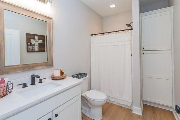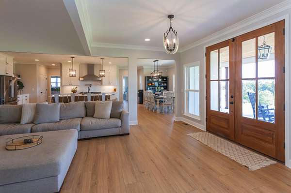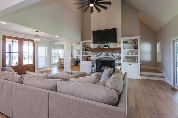 - Built-In Features, Ceiling Fan(s), Double Vanity, High Ceilings, Kitchen Island, Pantry, Primary Downstairs, Recessed Lighting, Separate Dining Room
