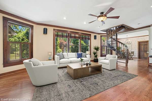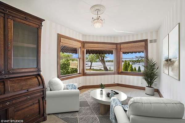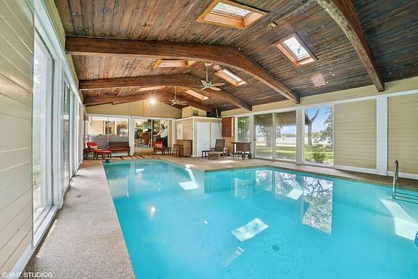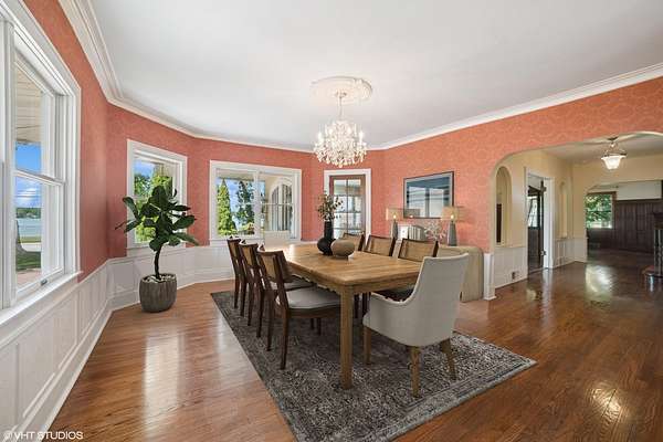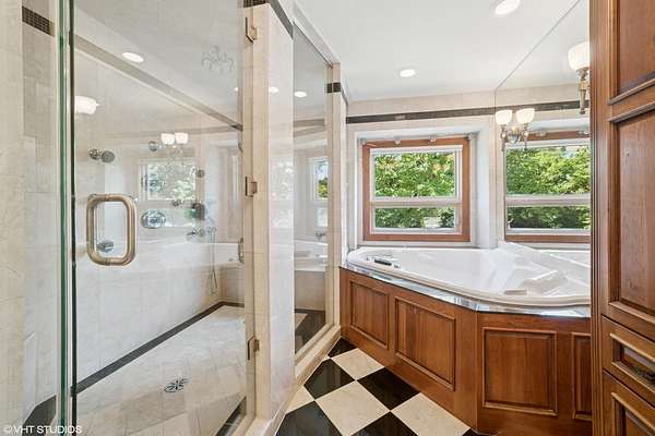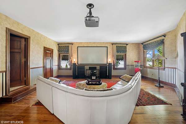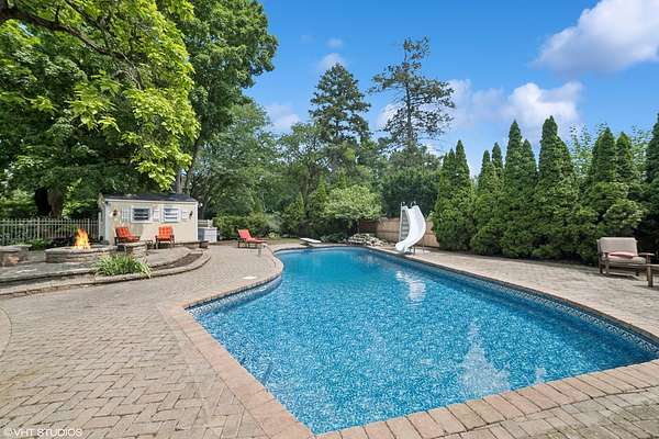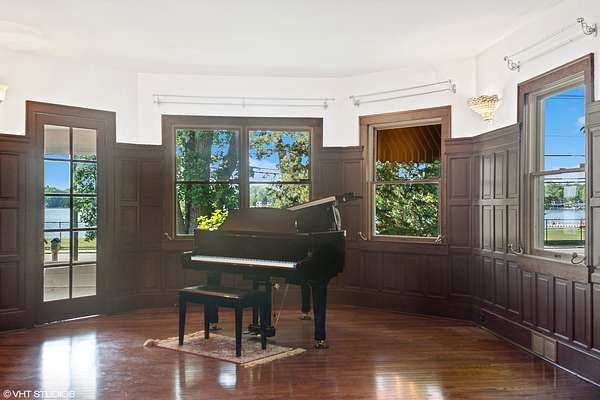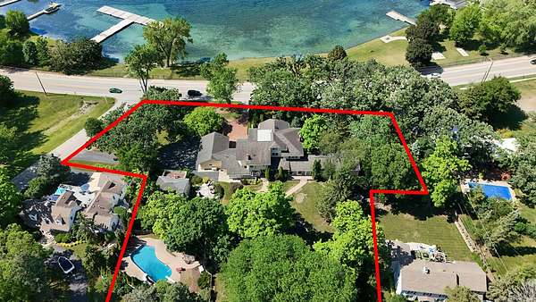 This amazing estate could be YOUR new lake home! The estate has an unobstructed view of beautiful, spring-fed Crystal Lake which offers swimming, sandy beaches & motorized boating. The estate has full lake rights to the 4 private beaches, parks & marinas on the lake. Bring your boat & water toys! The estate includes the primary house with 5 BRs, 6.2 BAs, a coach house with a finished 2nd floor office & full bath, large indoor & outdoor pools, a sauna, & 5 car garage. It's on the largest lot in the neighborhood (1.55 acres), which has been professionally landscaped & meticulously maintained, with a waterfall & a beautiful pond with aquatic plants, multiple stone patios, 2 firepits & a big outdoor pool. This estate is made for entertaining, fun family adventures & relaxing in your own luxurious haven. The estate boasts grand entertaining spaces, resort amenities & timeless charm. Rooms in the front of the house enjoy gorgeous lake views, while rooms on the back of the house have great views of the waterfall, landscaped stream, pond & gardens, the outdoor pool, stone patios & a huge yard for family games & activities. You can entertain groups of all sizes inside the main house! Enter your new home through custom, arched double doors into the Great Rm, with a floor-to-ceiling stone fireplace, hardwood floors & spectacular lake views. Enjoy dining in the spacious dining room, or relaxing in the very large, custom-paneled living room, also with a big fireplace. An impressive, large, first floor recreation area is an entertainer's paradise & a private, peaceful retreat for the new lucky owners of this estate. It includes a large, slate-topped bar that seats 8 comfortably, 2 wine refrigerators, bar sink, plenty of bar cabinetry & a large sitting area overlooking the beautiful backyard. Completing this recreation paradise is a 24' long indoor pool & a sauna. The Family Room adds more entertaining & relaxing space, with a powder room, a fun circular staircase to the 2nd floor, and great views of the backyard. The Family Room opens to the Kitchen, with an arched pass-through & snack bar, generous Eating Area & walk-in Pantry. The Kitchen features a breakfast bar that seats 4, an island with gas cooktop, large double sinks plus a bar sink, a built-in planning desk & stainless appliances. The 2nd floor includes an amazing Primary Bedroom Suite, complete with a large sitting area looking out over the lake & an impressive Primary Spa Bathroom. The Bathroom features an over-sized, glass, step-in shower with an octopus overhead shower, 8 on-wall shower heads, a hand-held shower & 2 shower seats. The Spa Bath also includes a soaking tub, closeted commode, built-in armoire & 2 separate sinks, one of which is in a big walk-in closet with a sit-down vanity & California Closet organizers. The 2nd floor also includes 2 more very generously sized bedrooms & a beautiful office/library with walls of built-in bookcases and a period mantle surrounding a decorative fireplace. Create a cozy ambience in this room with some candles in the fireplace! If you & your family enjoy watching movies, you will love the big media room! It has an en-suite full bath, a walk-in closet with CA Closet organizers & even a popcorn machine! This room includes a full projection system, surround sound & large on-wall screen. The 3rd floor boasts a very large Bonus Room, perfect for games, homework, billiards or quiet time. The Bonus Room is adjacent to a large BR with a full BA, walk-in closet & lots of storage. The finished basement features a large BR, full BA, big exercise room & huge laundry room with space for crafts, etc. This estate is in an ideal location facing Crystal Lake (nothing can be built in front of it), is a few blocks from Crystal Lake Country Club & a short walk to South elementary school. It offers easy access to downtown Crystal Lake & the Metra train. Don't wait! See it today!