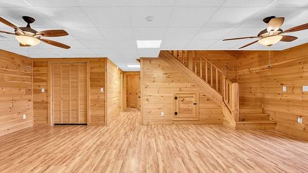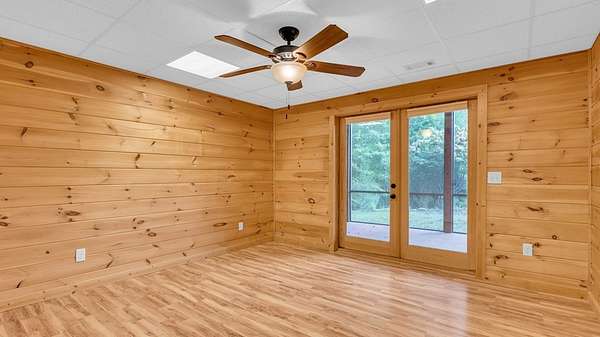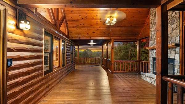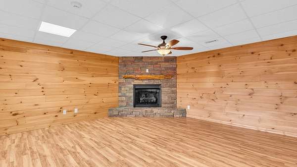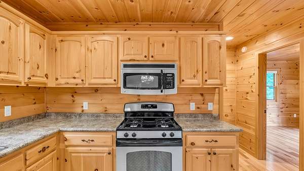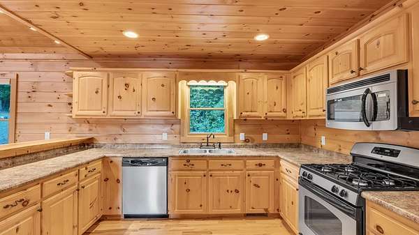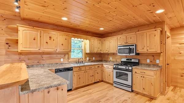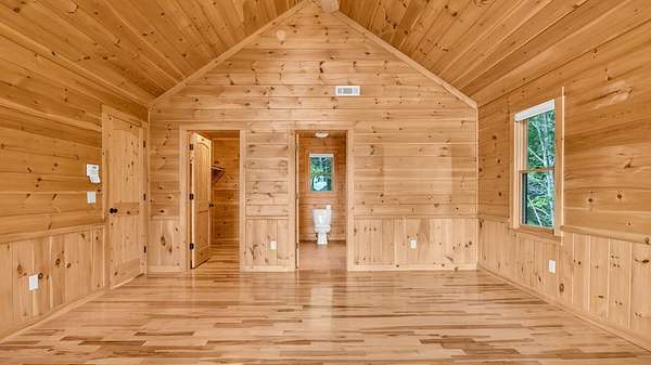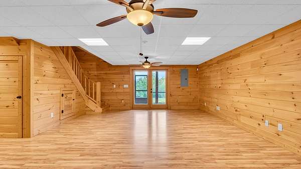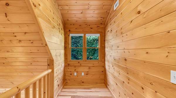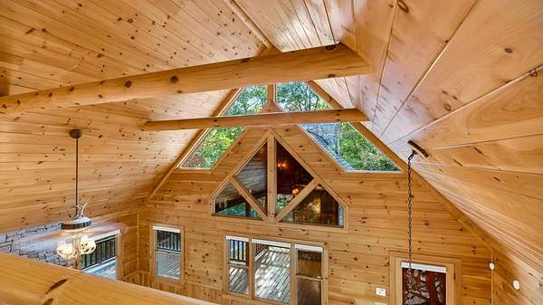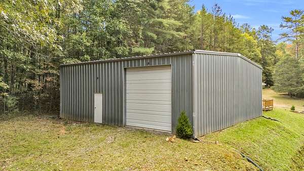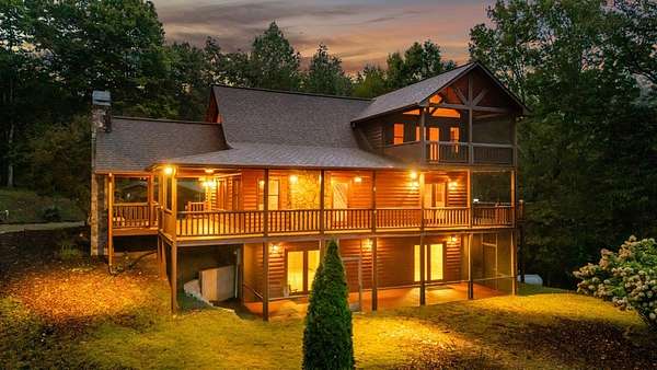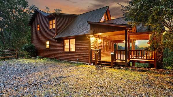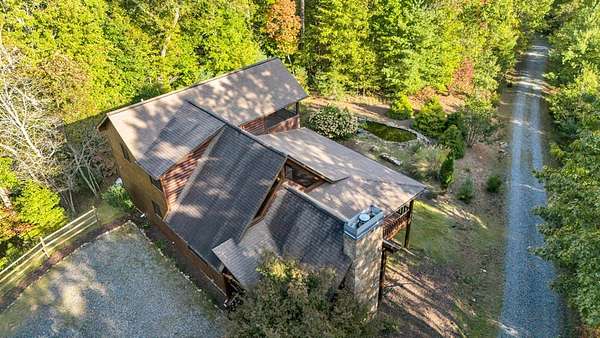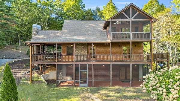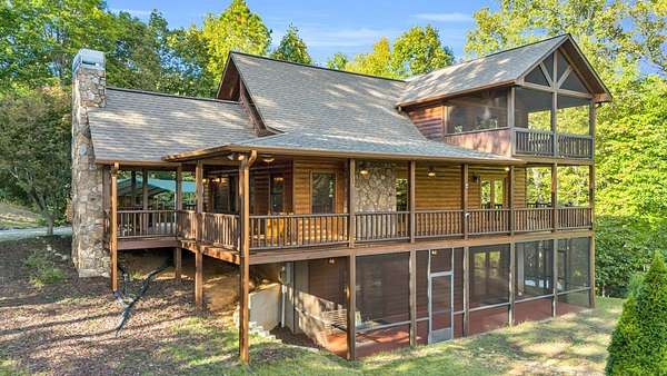 Incredible Value - Priced Below Recent Appraisal Sitting atop its own mountain and surrounded by sweeping year-round views, this custom log siding cabin offers refined mountain living across 11.14 acres of level, wooded, and gently rolling terrain in picturesque Fannin County. The main residence features two spacious owner's suites--one on the main level and one upstairs--alongside a third bedroom and full bath on the terrace level, which also includes a fireplace and access to a screened-in porch. Inside, soaring cathedral ceilings, rich wood interiors, and expansive windows frame the breathtaking mountain landscape. Three fireplaces--on the main level, in the basement, and outdoors--add warmth and character throughout, while a covered wrap-around deck invites relaxed outdoor living. At the base of the property, beside a tranquil creek that borders the road, sits a beautifully renovated 15x30 A-frame cabin backing up to the water. With new windows, new doors, a front porch, rear deck, wood stove, power, and two sleeping areas, the A-frame is beautiful in its own right and perfect as a guest retreat, studio, or creative getaway. Directly across from it, on the lower side of the property, is a 40x40 insulated metal building--formerly a water bottling plant--featuring 20-foot ceilings, heating and air, a boat door, and a standard roll-up garage door. Whether used for storage, workshop space, or future expansion, the building offers functionality and impressive scale. With two natural catch springs, unique structures throughout, and a landscape of rare mountain beauty, this property offers unlimited possibilities for full-time living, investment, or escape.