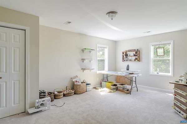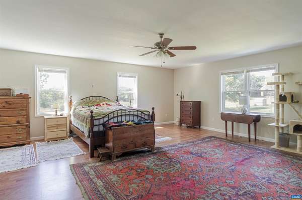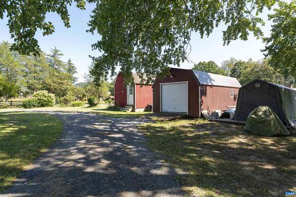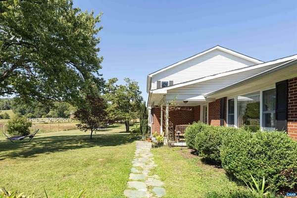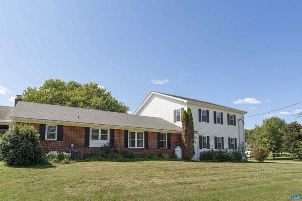 Expansive and comfortable home on 4.4 acres in a beautiful area of Nelson County, with stunning Blue Ridge views. Solidly built brick ranch with a 2-story addition contains all the space you could possibly need. 3 bedrooms, offices, bonus rooms, dining room, spacious kitchen, and living room with wood-burning fireplace (brand-new stainless-steel liner). Abundant storage in unfinished basement, plus 2 storage sheds (one has electric, insulation, and Air Conditioning) and a 10x20 equipment tent, whole house generator. The front yard has a magnificent Maple tree, and views of The Priest and Three Ridges, Nelson Co.'s most prominent mountains. 4.4 acres includes pasture area, 40x80 fully fenced garden plot, 75 native trees and shrubs just planted, .2-acre native wildflower meadow, 10x12 secure chicken run, hundreds of flower bulbs, and a year-round stream on one boundary. Professionally installed underground electric dog fence. If you are looking for a small homestead, or just easy country living in a beautiful and peaceful setting, this is the spot.