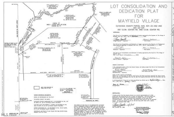 How would you like to build your own exclusive retreat in the heart of Mayfield VILLAGE? Now is your opportunity!! Uniquely situated 3.6 acre building site with availability/access to gas, electric, sewer & water connections. Perfectly elevated building site with natural boundaries featuring mature trees & 2 ravines located at the north and east boundaries make it feel like a personal oasis. Just over a mile to Metropark access, Town Hall & Community center, Grove Amphitheater, Parkview community pool, Greenway trail, Mayfield Library, grocery, restaurants, playgrounds and more. Site is marked at curb, see small graveled parking area when viewing. Follow listing photos to see layout and boundaries (order starts at curb on the south boundary and goes to rear of lot, then north & back to front/west boundary). Why wait? Call today! Deed restrictions apply.