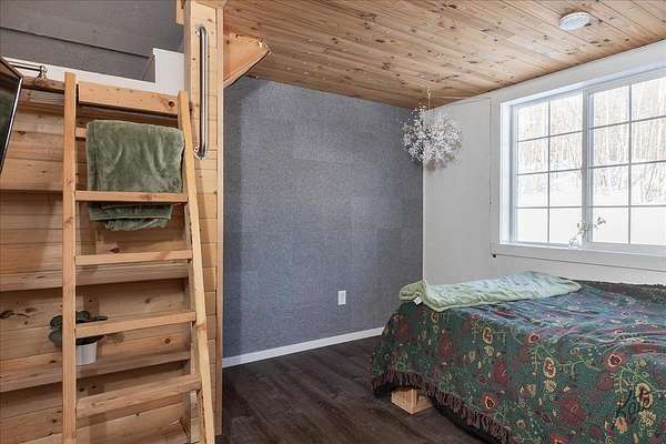 - Covered Deck/Patio, Deck/Patio, Lawn, Natural, Outdoor Sauna, RV Parking, Shed
