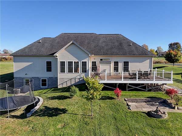 Custom-Built Contemporary Ranch! Beautifully set on a 1.51-acre level lot, this home offers a perfect blend of style, comfort, and function. Enjoy the outdoors with a new Trex deck, patio with firepit area, and garden space backing to peaceful fields and trees. Inside, discover soaring ceilings, an open floor plan, and gleaming hardwood floors highlighted by architectural columns and detailed trim work. The cathedral great room is warmed by a propane gas fireplace, and the cherry kitchen features granite counters, a center island, breakfast bar seating, and a pantry, all open to the bright dinette area. Formal dining room with glass-pane French doors. The owner's suite includes a walk-in closet and luxury bath with a spa tub and walk-in shower. Convenient first-floor laundry off the mudroom/garage entry. Bonus second-floor space is ideal for a guest room, office, studio, or just storage space. Full walk-out lower level is high and dry - perfect for storage, workshop, family room or future finishing. A move-in ready home that truly has it all! Showings start Thursday 10/23 at 10AM. Open house Saturday 10/25/25 from 11AM-12:30PM. Offers to be negotiated Monday 10/27/25 at 11AM.