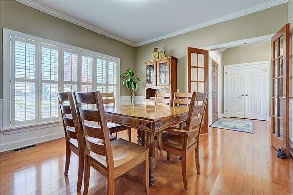 - Bath In Primary Bedroom, Bedroom On Main Level, Breakfast Bar, Cathedral Ceilings, Ceiling Fans, Convertible Bedroom, Den, Eat In Kitchen, Entrance Foyer, Granite Counters, Great Room, Jetted Tub, Kitchen Island, Main Level Primary, Pantry, Primary Suite, Programmable Thermostat, Separate Formal Dining Room, Window Treatments