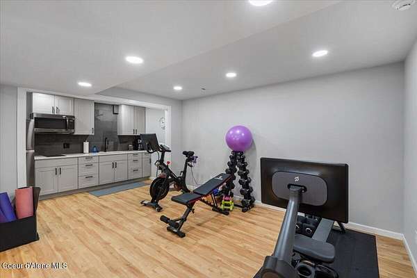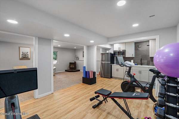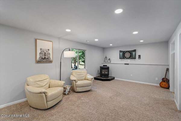 Centrally located daylight rancher with finished 25 x 40 shop on 5.1 acres! Home has many gorgeous updates & features including finished walkout basement with full kitchen, workout room, family room with a pellet stove, two bedroom (one non-egress) and full bath. Upstairs features custom hardwood cabinets, new quartz countertops, all new bathrooms, and new LED lighting. Asphalt driveway with extra parking with privacy gate, 2-car attached garage. Main floor living with master suite, laundry room, open kitchen, great room, pellet stove and 3 bedrooms. Both master-suite and guest bedroom have entrances to the covered deck. Property is fenced in front and backyard is cross fenced for pets. Shop is equipped with 200 amp, 50 amp receptacle, RV hookup & dump area, water, wired for welder/compressor. Home has central vac, water softener, two water heaters (replaced in '21 & '25), humidifier, security system, private well with 3000 gallon water cistern with new pressure tank and electronics.