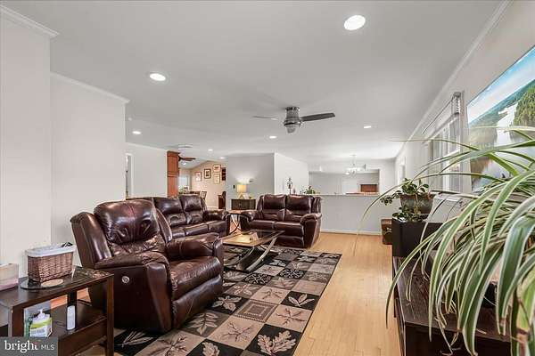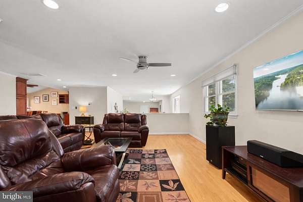 Welcome to this beautifully remodeled home, thoughtfully expanded in 2020 and set on a private 2.07-acre lot backing to nature, located on a no thru street for added privacy and minimal traffic. A spacious foyer with ceramic tile flooring welcomes you inside and leads seamlessly into the dining area, where hardwood floors, a bay window, and abundant natural light create an inviting setting for everyday living and gatherings. The adjacent family room is anchored by a striking stone wall wood-burning fireplace and enhanced with crown molding, providing a warm and cohesive main living space. The fully remodeled kitchen is designed with both style and function in mind, featuring granite countertops, a tiled backsplash, under-cabinet lighting, stainless steel appliances, a gas cooktop, and a built-in planning station. A vaulted ceiling and ceiling fan add to the sense of space, while direct access leads to the Azek dining deck, perfect for outdoor entertaining and overlooking the peaceful, tree-lined rear yard. The main level offers a flexible and highly functional layout, including a primary bedroom with hardwood flooring, vaulted ceiling, and a beautifully updated en-suite bath with a fully retiled walk-in shower. A dedicated study with French doors provides an ideal work-from-home space, while an additional flex room with a half bath and private entrance offers excellent potential for guests, office use, or multi-generational living. A convenient main-level laundry room is equipped with a utility sink and an additional shower for added functionality. Upstairs, a loft area connects to two additional bedrooms with new carpet, fresh paint and ceiling fan. A full hall bath, creates a comfortable secondary living space. The lower level features ceramic tile flooring throughout, offering both a recreation area and game space, ideal for entertaining or everyday use. Outdoor living is complemented by a private rear setting surrounded by mature trees. The property also includes both an attached front-load 2-car garage and a detached garage, providing ample parking, storage, and flexibility. Located in a desirable Howard County setting, this home offers a balance of privacy and accessibility with nearby parks, shopping, dining, and commuter routes. Enjoy the benefit of a quiet, residential setting while remaining within easy reach of everyday conveniences and major roadways. Recent updates include fresh interior paint (2026), new carpet (2025), and roof replacements in 2015 and 2020 corresponding with the home's expansion.