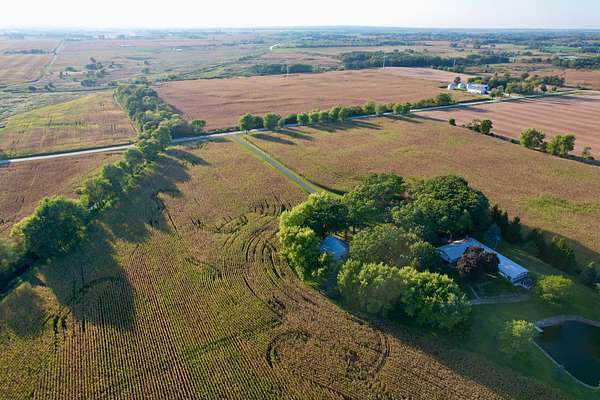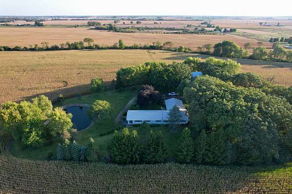 This 80-acre property includes 75 acres of highly productive tillable ground and a peaceful oak grove oasis where two homes are located on a 660' asphalt driveway. The 1974 house has 4 bedrooms, 3 bathrooms, and a basement workshop with 11-foot ceilings, while the second home offers 3 bedrooms and 2 bathrooms. A barn and pond complete the property.