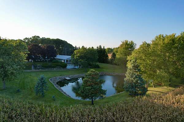 Main Home- Spacious Custom-built 4 bedroom, 3 1/2 bath ranch house with over 2900 square ft living space. Spectacular deck views of a beautiful pond stocked with bass and bluegill fish. Masonry fireplace, radiant floor heat, 2 heat pumps HVAC systems, & wood-burning outdoor boiler. Spacious 2+ car attached garage. (810 sq ft,) Drive-in basement with 11 ft. high concrete ceilings, 2650 sq. ft. Plenty of room for workshop and any projects.