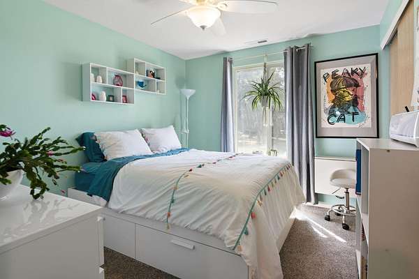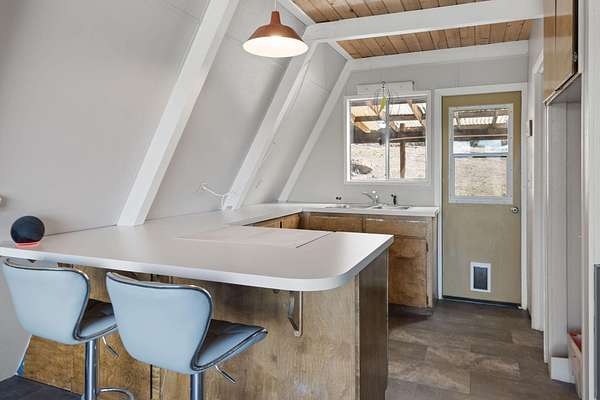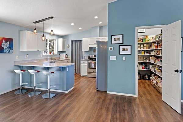 - Breakfast Bar, Ceiling Fan(s), Laminate Counters, Linen Closet, Open Floorplan, Pantry, Primary Downstairs, Shower/Tub Combo, Vaulted Ceiling(s), Walk-In Closet(s)