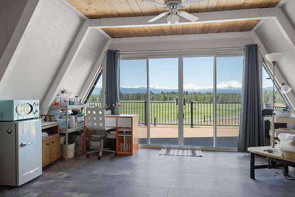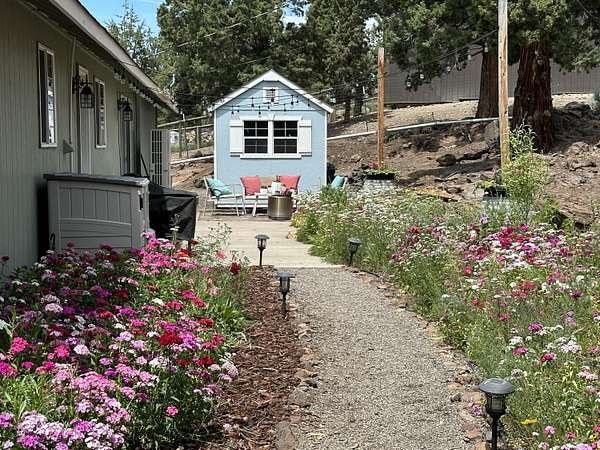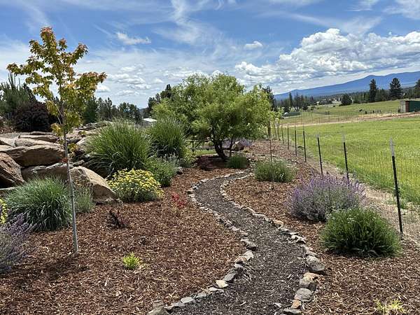 Presenting an enticing property: a single-level home on a spacious 5-acre lot with breathtaking Cascade Mountain Views. Inside, enjoy the inviting open floor plan, perfect for contemporary living. The kitchen features an eating bar and pantry, while the primary bedroom boasts an updated master bath. A new HVAC system installed in 2021 includes two-heating/cooling zones and ensures year-round comfort. Included is a charming 765 sq ft detached A-Frame Studio, currently used as an art studio and remodeled for added appeal. Outside, the landscaped grounds are a delight with an automated sprinkler system fed by irrigation water. Grow your own produce in the fenced garden area with a professional 12x20 greenhouse. Plus, the property comes with 2.56 acres of certified irrigation rights for ample water supply. This property blends natural beauty, modern comforts, and creative potential, offering a tranquil retreat amidst the stunning Cascade Mountains.
