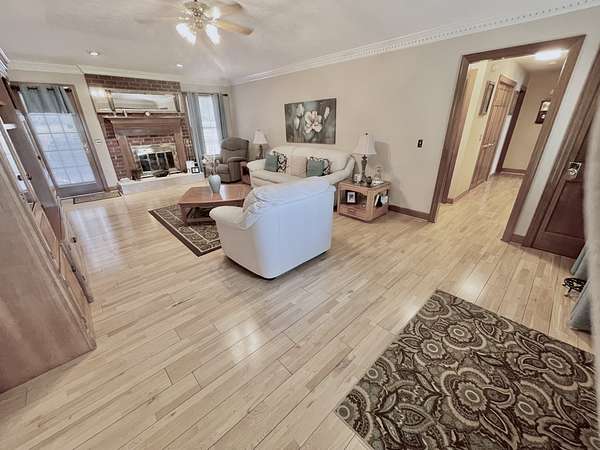 Enjoy COUNTRY-LIKE LIVING with CITY CONVENIENCE on THIS spacious 2.08-acre LEVEL homesite, offering plenty of ELBOW ROOM, beautiful surroundings and the perfect backdrop for designing the backyard retreat of your dreams! With NO HOA, you'll enjoy the FREEDOM to truly make this property YOUR OWN--park your RV, add a pool, garden, greenhouse or workshop and design the lifestyle that fits you best, without neighborhood restrictive covenants! This all-brick 3-bedroom, 3-bath home features all your everyday living spaces and bedrooms conveniently located on the main level. The full basement expands your possibilities--featuring a 2-Car Garage, Full Bath and a flexible 14x10 Office or Safe Room during storms, along with approximately 1,300 sq. ft. of conditioned storage or expansion space--perfect for a WORKSHOP, HOME GYM or future finished area. An additional metal storage building adds even more versatility--ideal for use as a detached 2-car garage, workshop or space to store lawn equipment, tools or recreational gear. It's a fantastic bonus for anyone seeking EXTRA STORAGE or HOBBY SPACE while enjoying the property's spacious, country-like setting. Enjoy hosting family meals and gatherings in this spacious layout which offers a large dining room, breakfast nook and kitchen bar seating. Expansive granite countertops, a sleek linear glass mosaic tile backsplash, and large-format tile flooring give the kitchen a fresh, modern-day feel that seamlessly blends style, function and sophistication. Incredible great room with vaulted ceiling and gorgeous wood beams provides plenty of space for the whole family to hang out and spend time together, while others can enjoy a more private setting in the separate living room by the fireplace. All this, just MINUTES from shopping, dining and everyday amenities--with easy access to the interstate, offering the perfect blend of comfort, convenience and room to breathe. Buyer to verify schools, taxes, and all pertinent information.