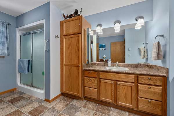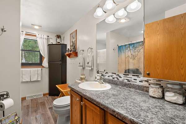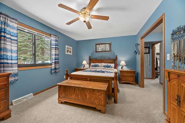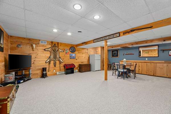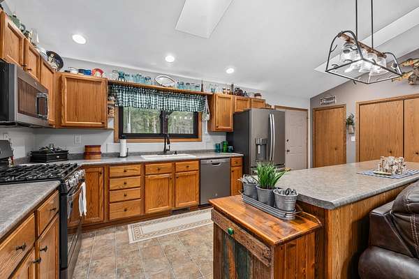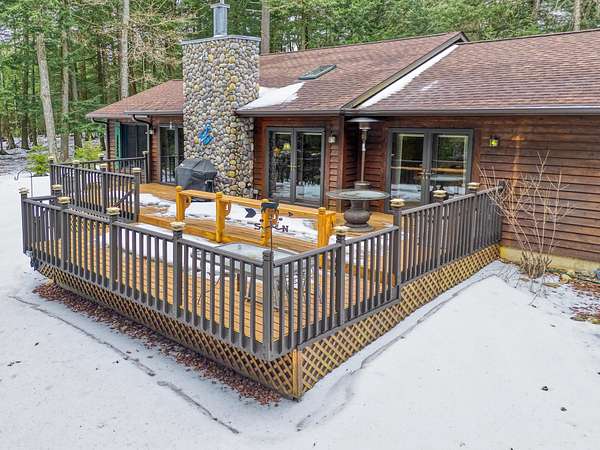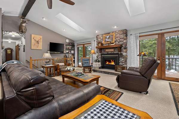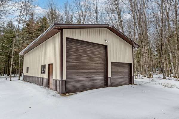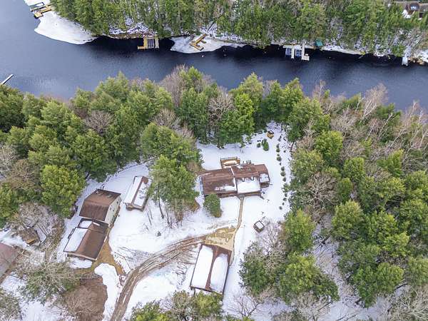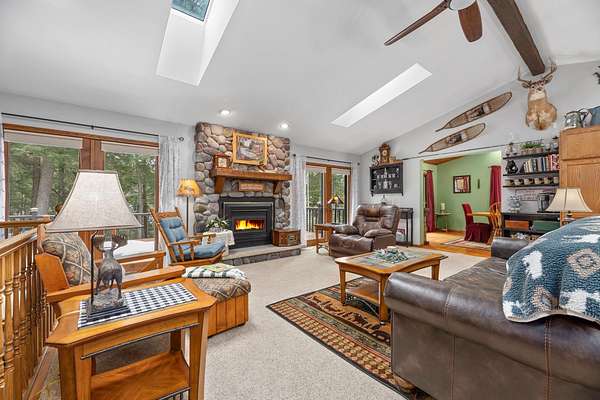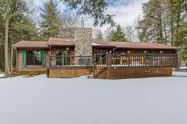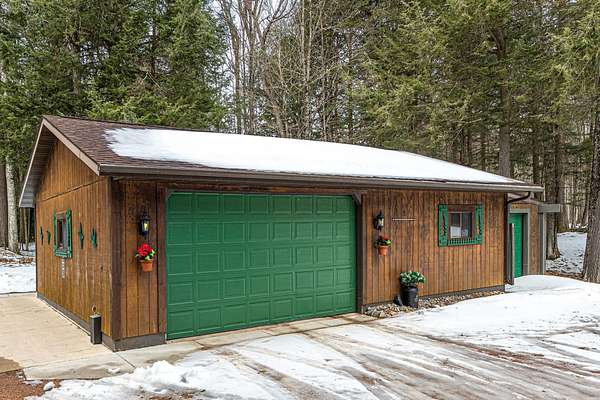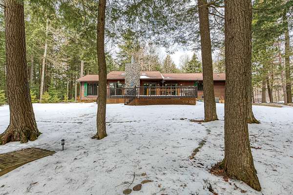 Three Lakes Chain - Northwoods Charm - Loads of Storage. This meticulously cared for 3 bedroom/3 bathroom ranch style home located just out of Deer Lake on the peaceful Crystal Creek thoroughfare, part of the famous Eagle River/Three Lakes Chain. The main floor living area features a tastefully decorated open concept kitchen/dining/great room with a gas fieldstone fireplace, timber beam accent and floor to ceiling windows overlooking the landscaped yard and the abundant wildlife. Main level also boasts a spacious master bedroom/bathroom suite with a huge walk-in closet and a built-in make-up vanity. Rounding out the main level is a second bedroom, full bath and an office/den. On the lower level you will find an inviting rec room, a huge craft/hobby room with built-in cubbies, full bathroom and 3rd bedroom. New roof and windows were installed in 2021, as were the gas forced-air furnace and central A/C. All appliances were also purchased new in 2021. Walk out from the main floor great room onto a large deck that overlooks a gentle sloping landscape to the water. This 2 acre property also offers ample storage with a detached, insulated 2-car garage with an attached 11x25 heated shop and 19x12 storage stall. Need even more storage? This property has that covered with a newer 48x30 pole barn for all your boats, toys, equipment or camper. Complete with 220V hook up. Excellent location being right on the UTV/snowmobile trails and only 3 miles from town!